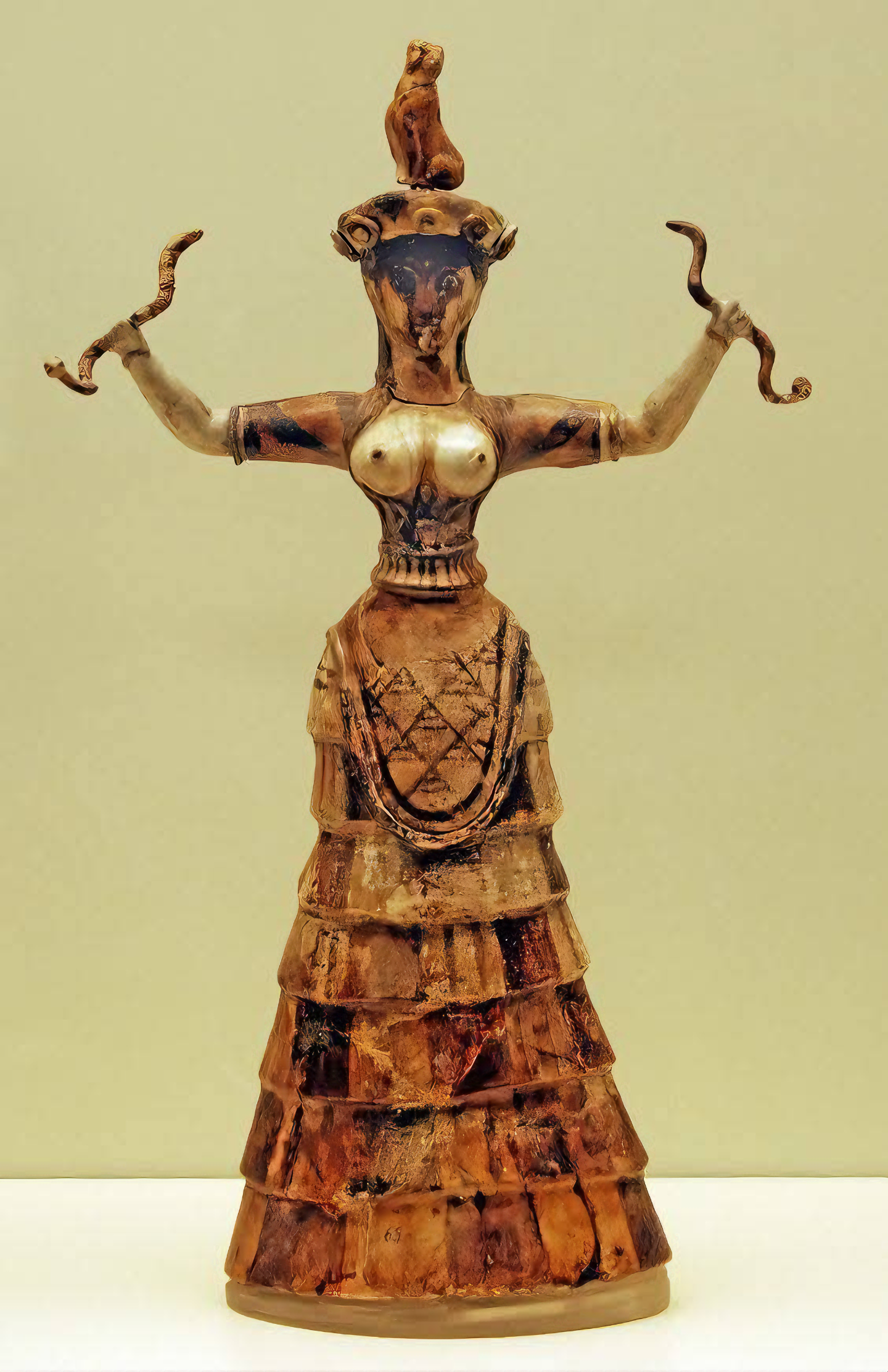 황소 이미지를 제외하고, 고대 크레타에서 발굴된 유일한 소위 뱀 여신으로 아마도 두 마리 뱀을 뻗은 손에 쥐고 있는 대지의 여신으로 본다.