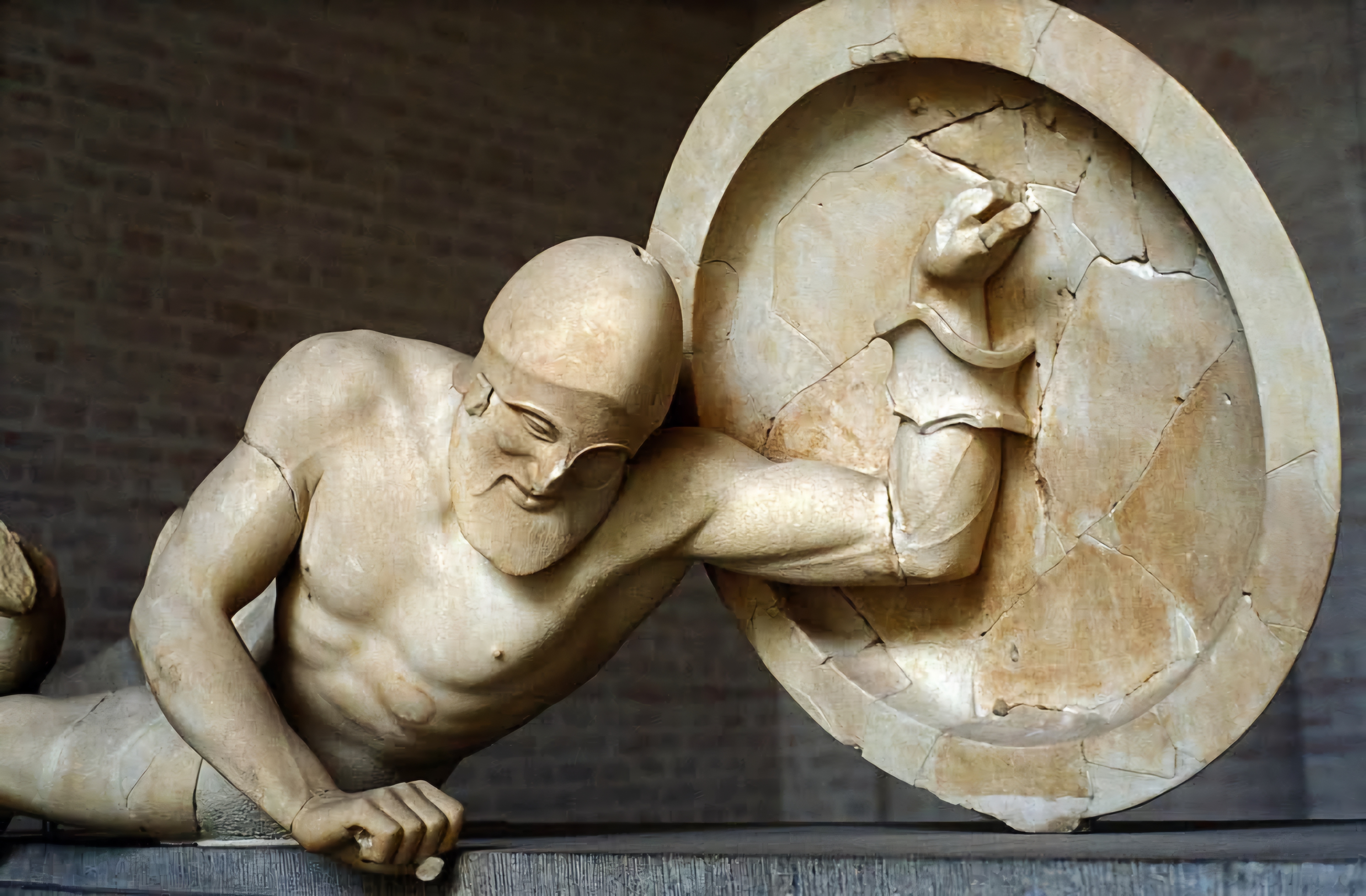이 이미지는 아이기나Aegina(기원전 490~480년)에 있는 아테나 아파이아 신전 Temple of Athena Aphaia 동쪽 페디먼트pediment를 장식한 죽어가는 전사 조각이다.