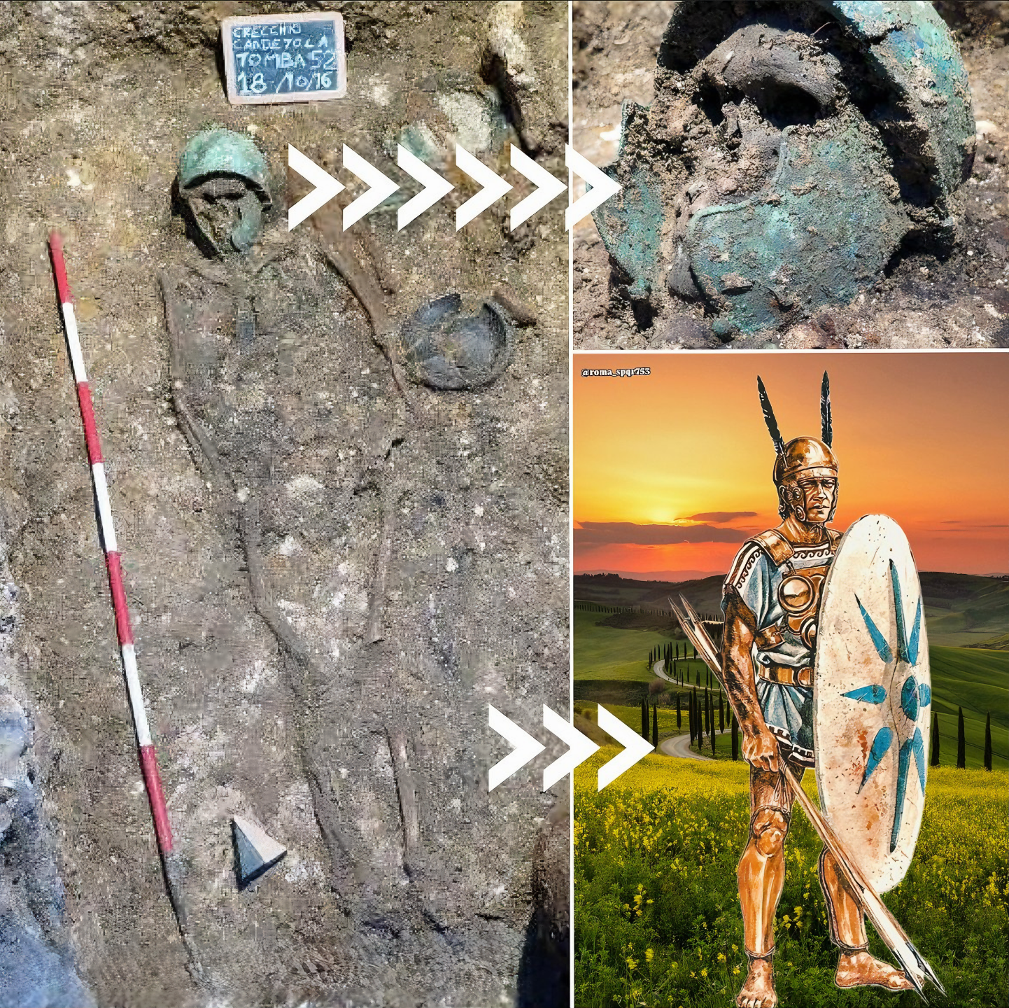 놀랍게도 그의 유골은 다양한 장례용품, 특히 헬멧과 함께 잘 보존되어 있다. 이 헬멧은 로마 공화국 시대에 가장 흔히 사용된 헬멧 모델 중 하나인 몬테포르티노 유형Montefortino type이다.