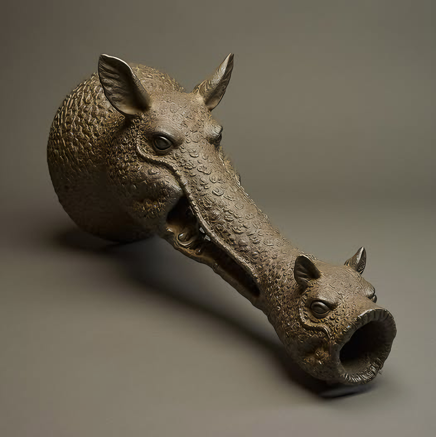 기원전 1세기로 거슬러 올라가는 이 정교한 악기는 으르렁거리는 멧돼지 모양을 한다.
