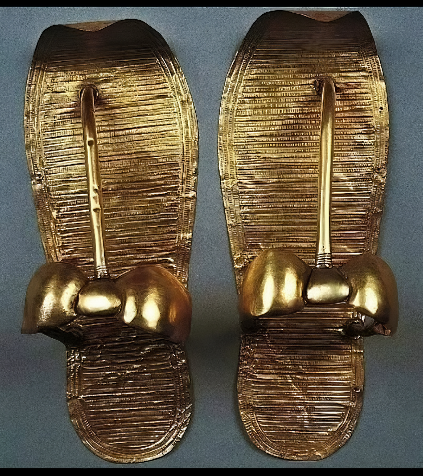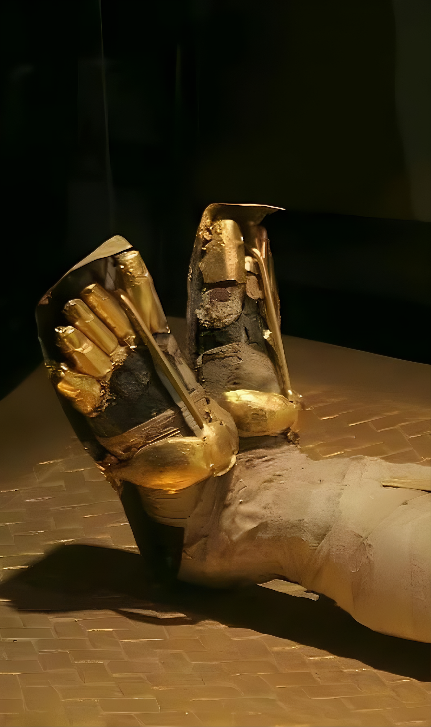 These ceremonial items were part of the lavish funerary rituals of ancient Egyptian kings, with golden toe caps reinforcing the symbolism of the king in eternity