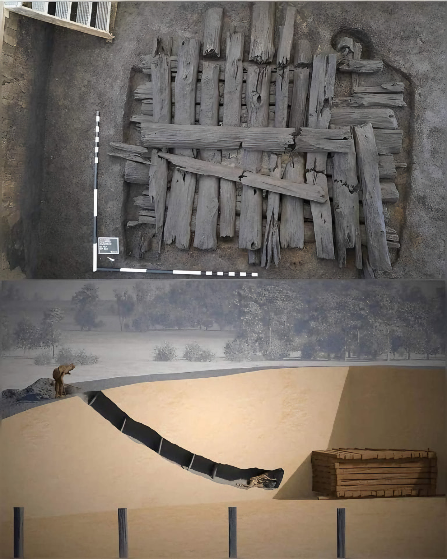 The wooden chamber, remarkably preserved by groundwater, was built from massive oak planks, though ancient grave robbers had looted parts of it.