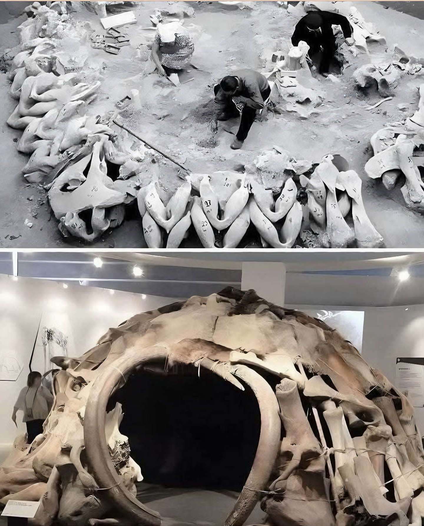 2020년에 공개된 발굴 소식이다. 러시아에서 털매머드woolly mammoth 60마리 개체분 뼈로 만든 2만5천년 전 원형 움집 하나를 발견했다. 이 매머드 움집 mammoth hut에서는 사람들이 그 안에서 불을 피웠