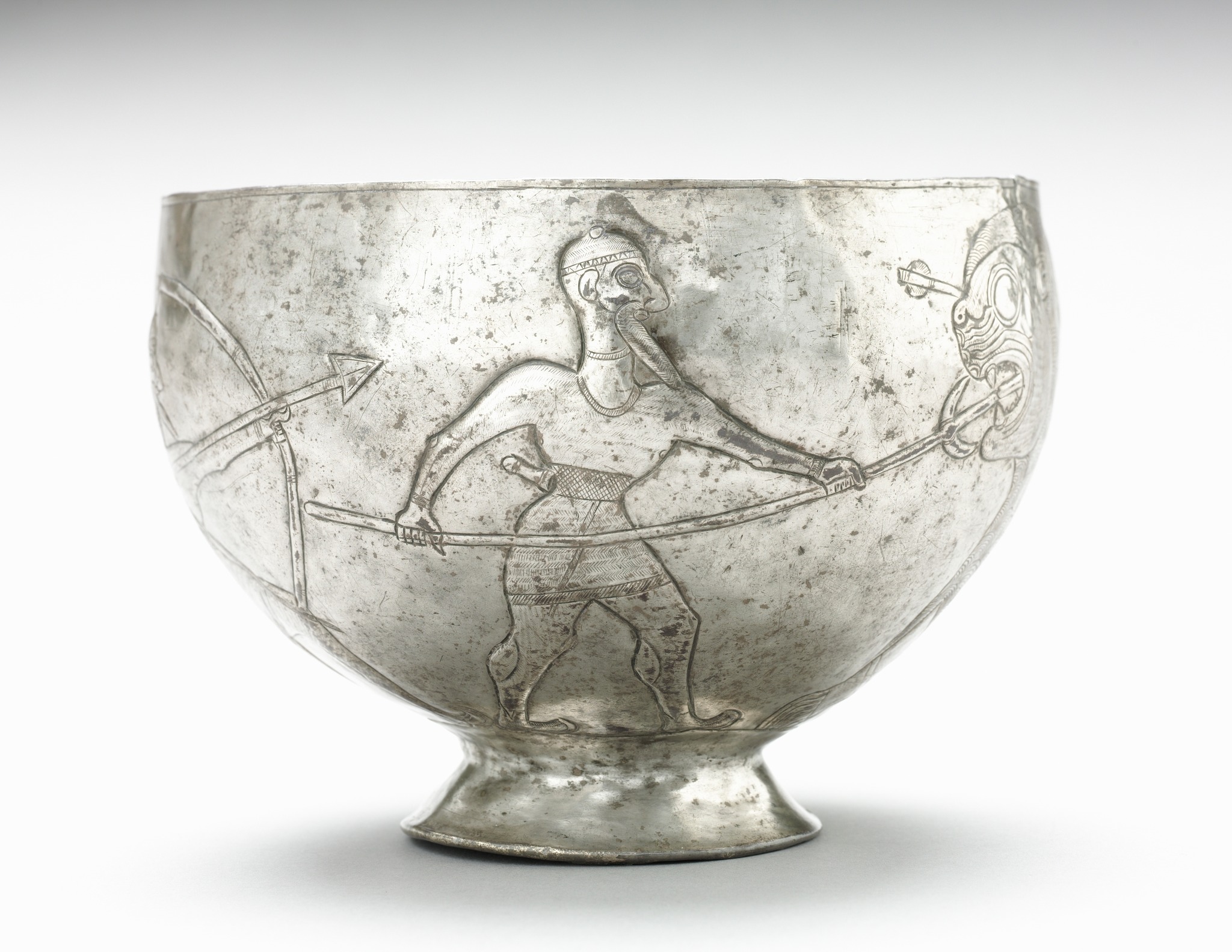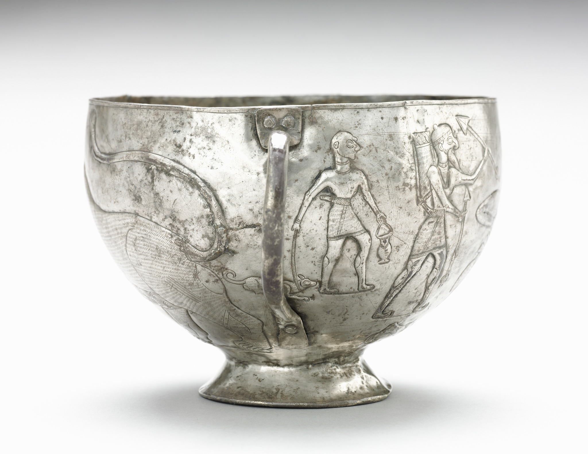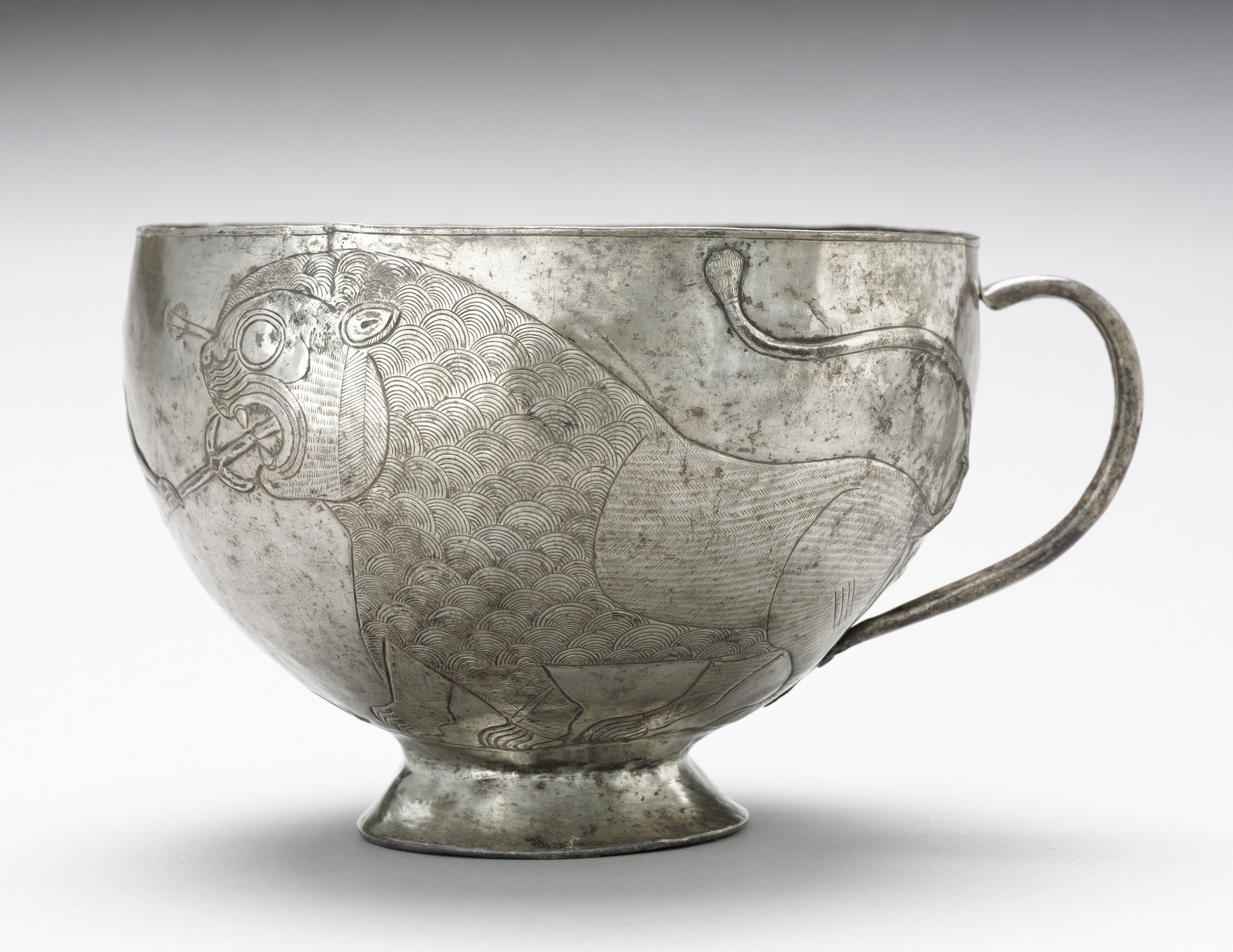 최소 3000년 전에 만든 이 사자 사냥 컵 lion hunting cup은 이란 암라시Amlash에서 나왔다고 추정한다.