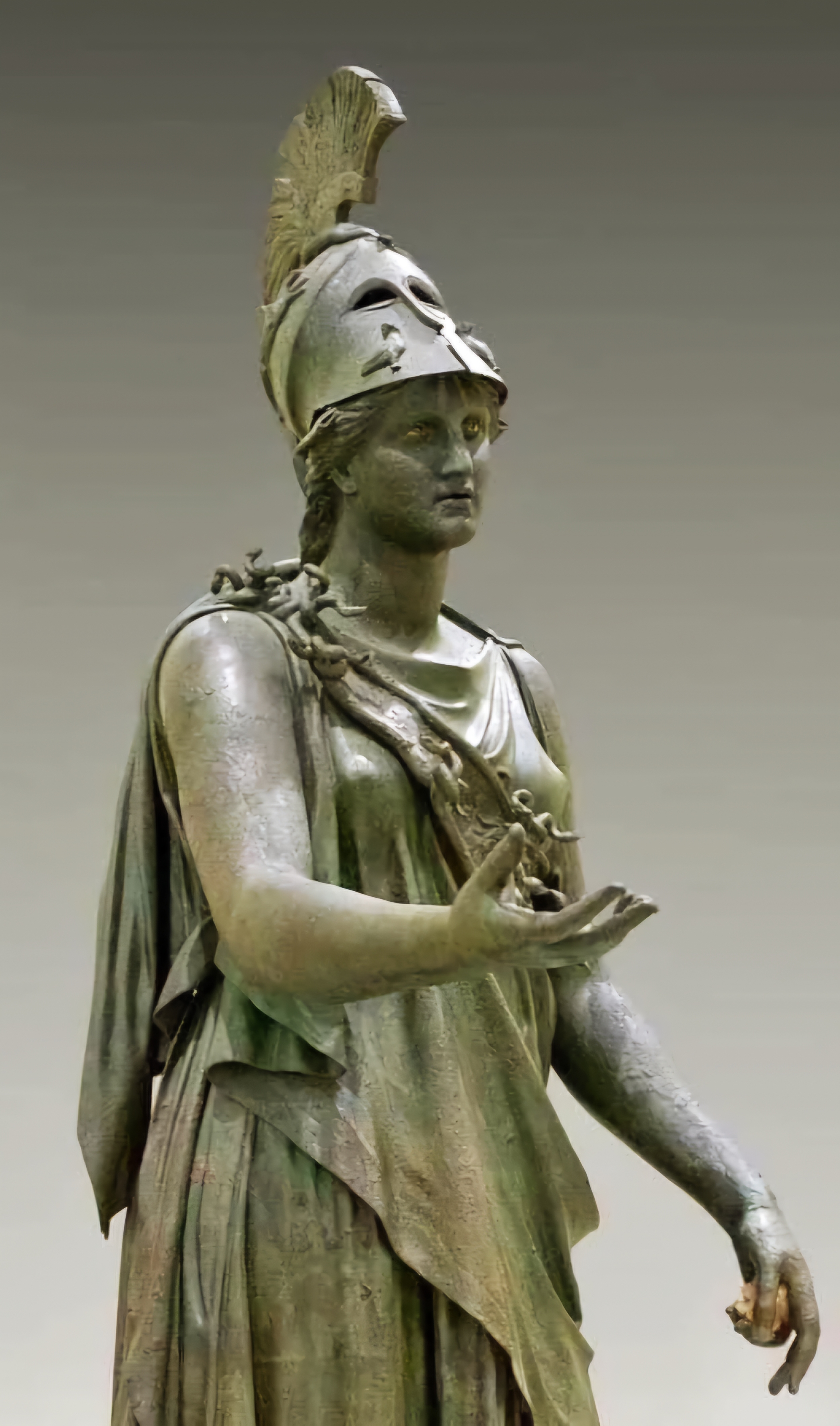높이 거의 8피트에 달하는 이 순동제 조각을 그 발견 장소 이름을 따서 "피레우스 아테나Piraeus Athena"라 부른다.