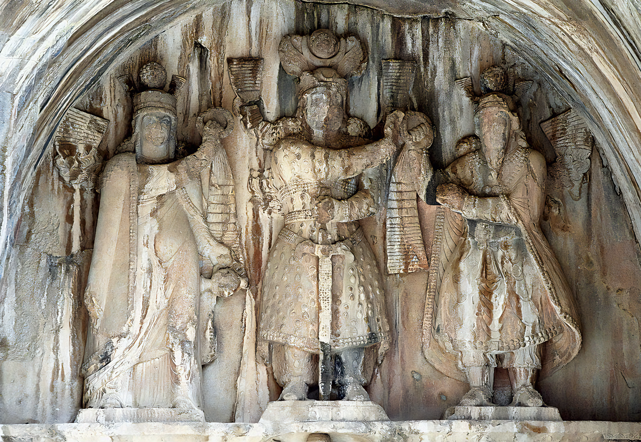 타크에 보스탄(Taq-e Bostan)이라는 데서 발견되는 #사산조_페르시아 왕 #호스로 Khosrow 2세(재위 590~628) 서임식investiture을 묘사한 고부조high-relief다.