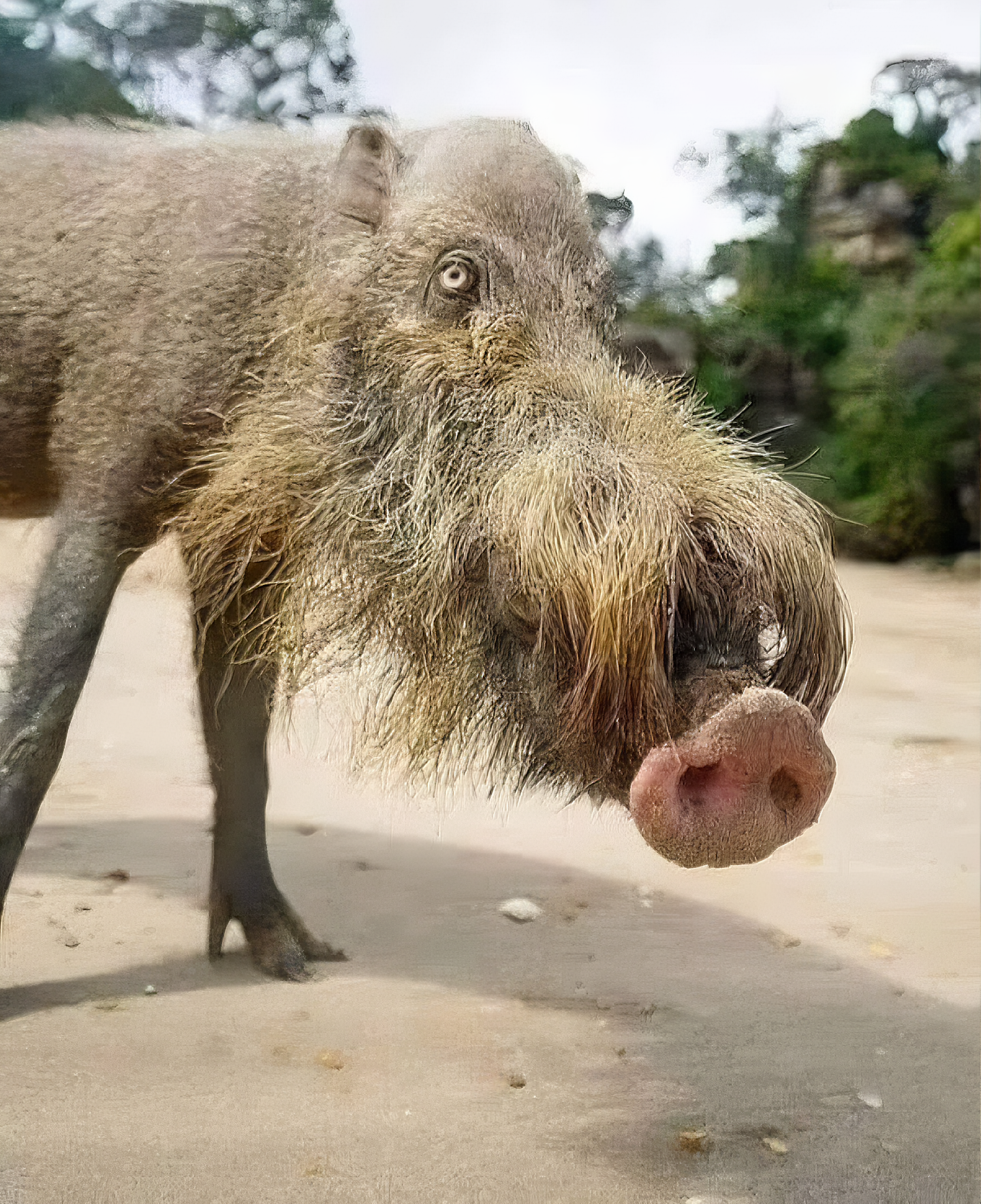 AI로 만들어낸 가상 괴동물인가 했더니 보르네오 열대우림에 서식하며, 최대 200마리까지 무리를 지어 수천 킬로미터를 이동하는 돼지님이시랜다.