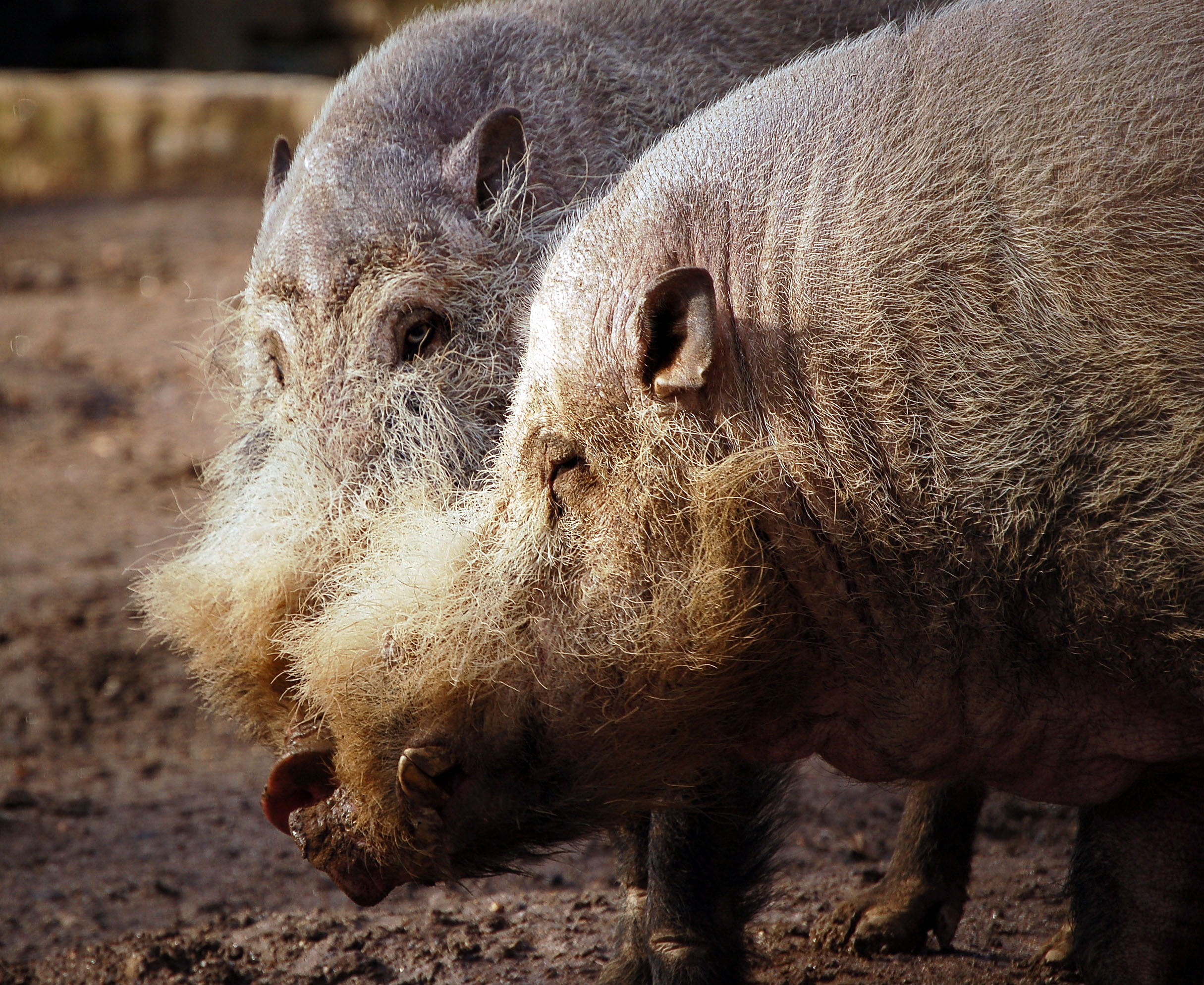 보르네오 수염 돼지 Bornean bearded pig (Sus barbatus), 또는 순다 수염 돼지 Sunda bearded pig, 또는 간단히 수염난 돼지 bearded pig라 부른다 한다.