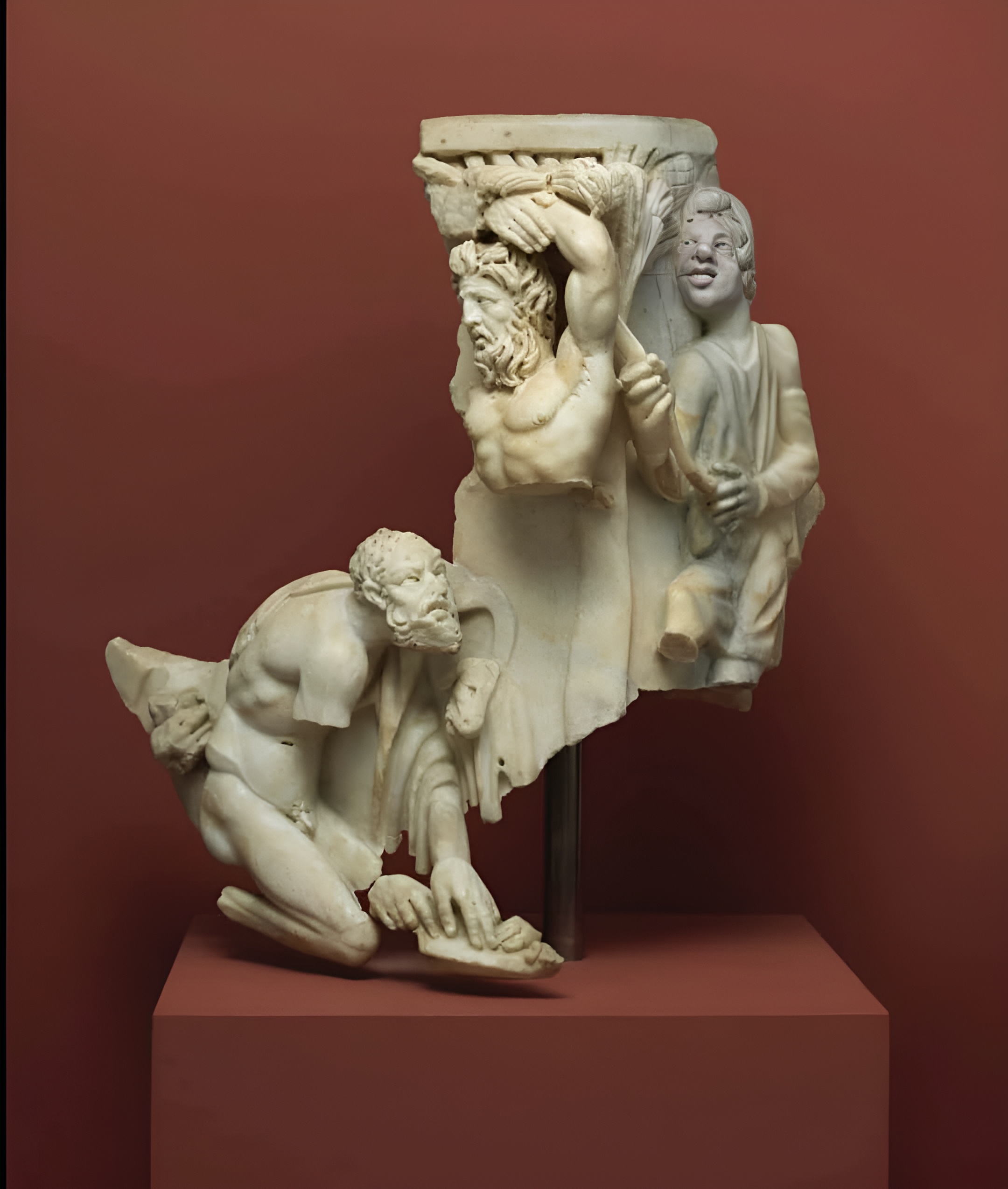 가죽을 벗겨진 모습을 보여주는 그룹은 헬레니즘 시대에 만들어진 조각 그룹을 복제한 것이다.