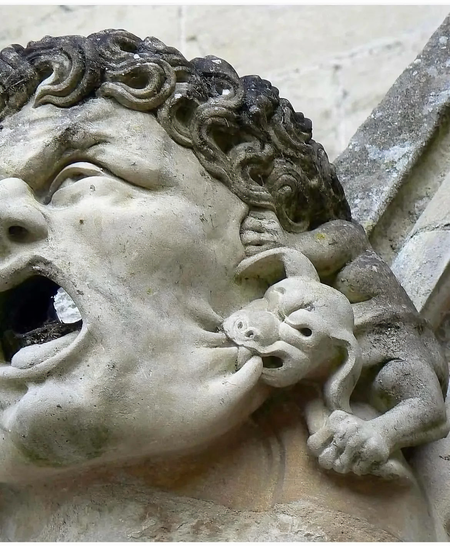 이 가고일의 과장된 모습과 그 위에 물고 있는 작고 기괴한 형상은 흥미로운 대조를 이루며, 배수라는 진지한 기능과 유머 감각, 그리고 창의성이 조화를 이룬다.