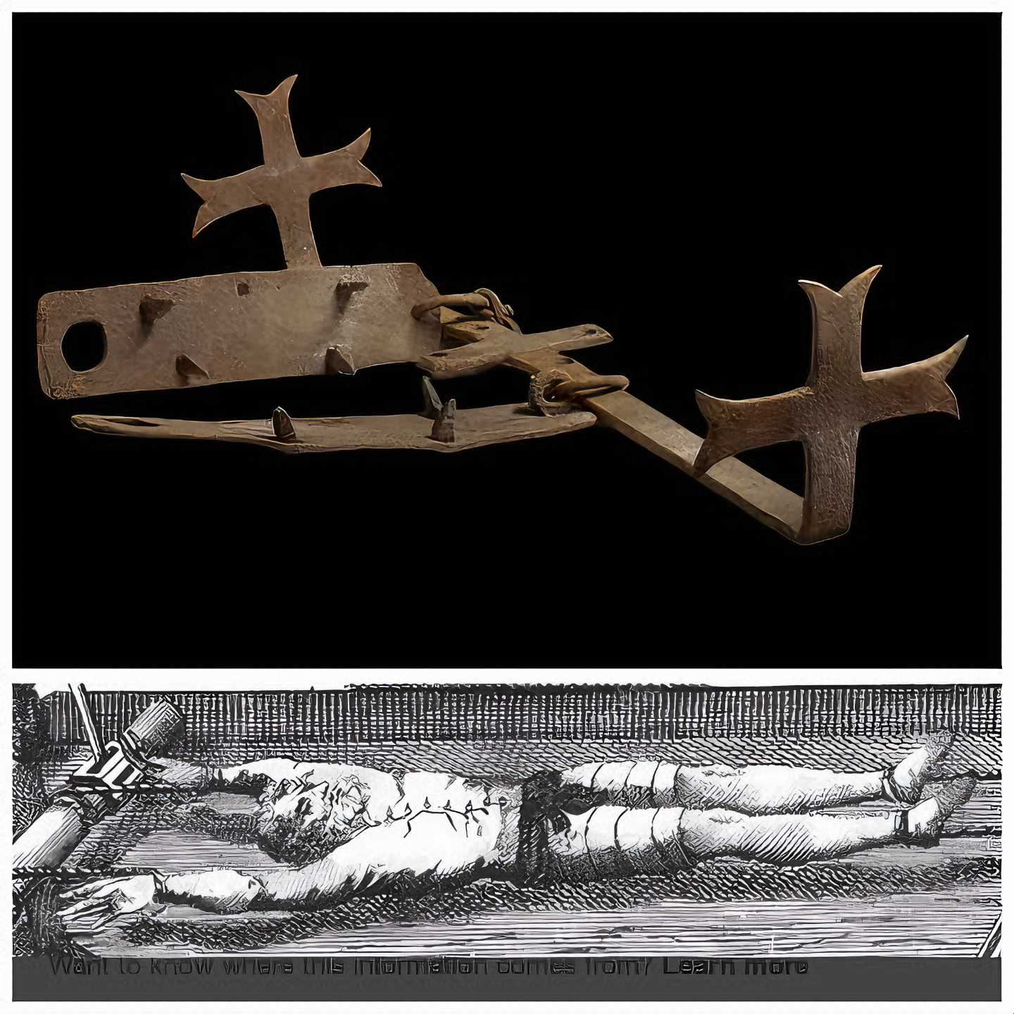 단조 철forged iron로 단련한 중세 #고문 도구 torture instrument로, 끝에 두 개 템플러 십자가 Templar crosses가 있다.
