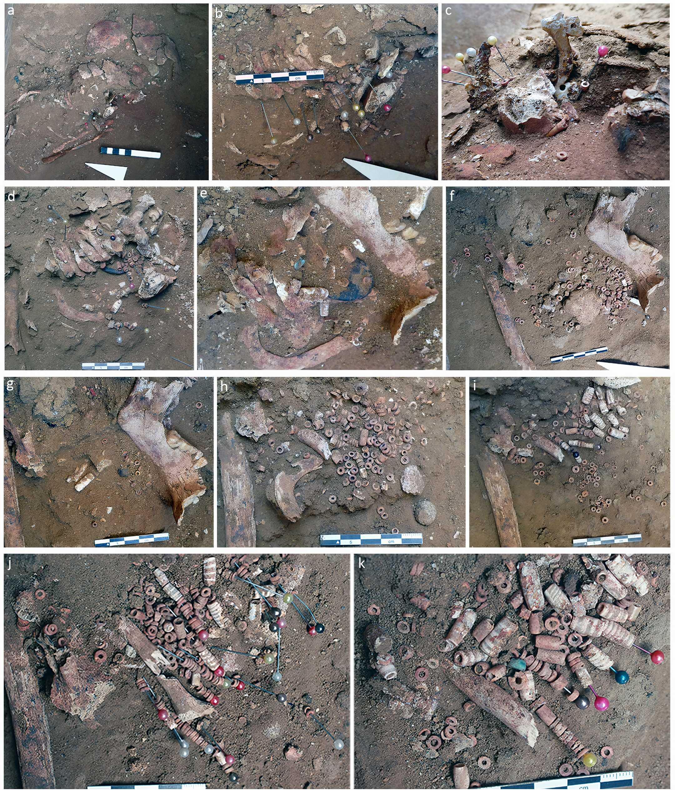 이 무덤은 2018년에 발굴되었다고 한다. 당연히 발견 당시에는 목걸이는 흩어진 상태였으며 끈이나 실은 보이지 않았다.