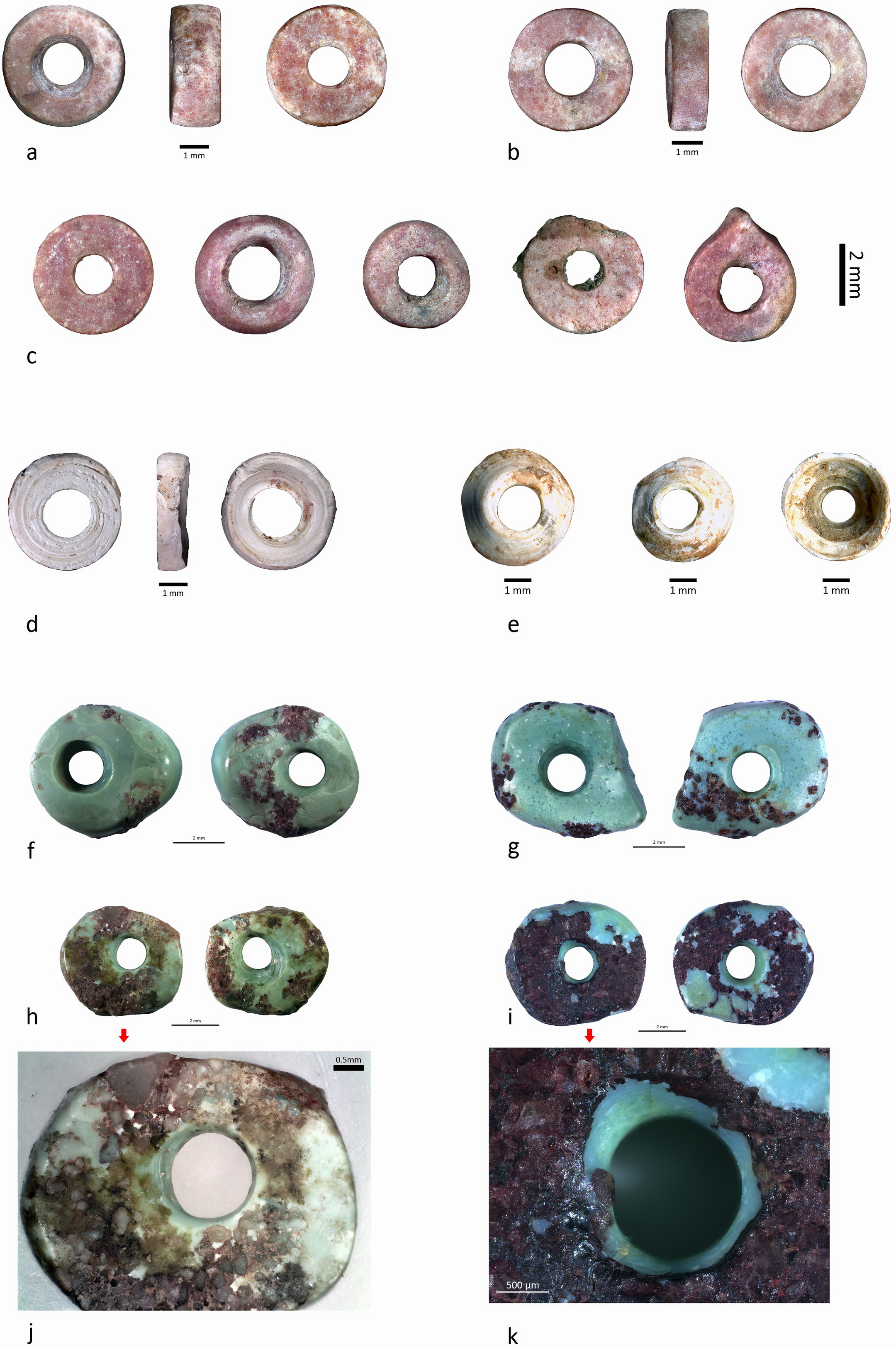 반지 구멍은 펜던트에 연결된 일곱 줄 구슬을 위한 끈이나 끈이 반지에 있었음을 시사한다고.
