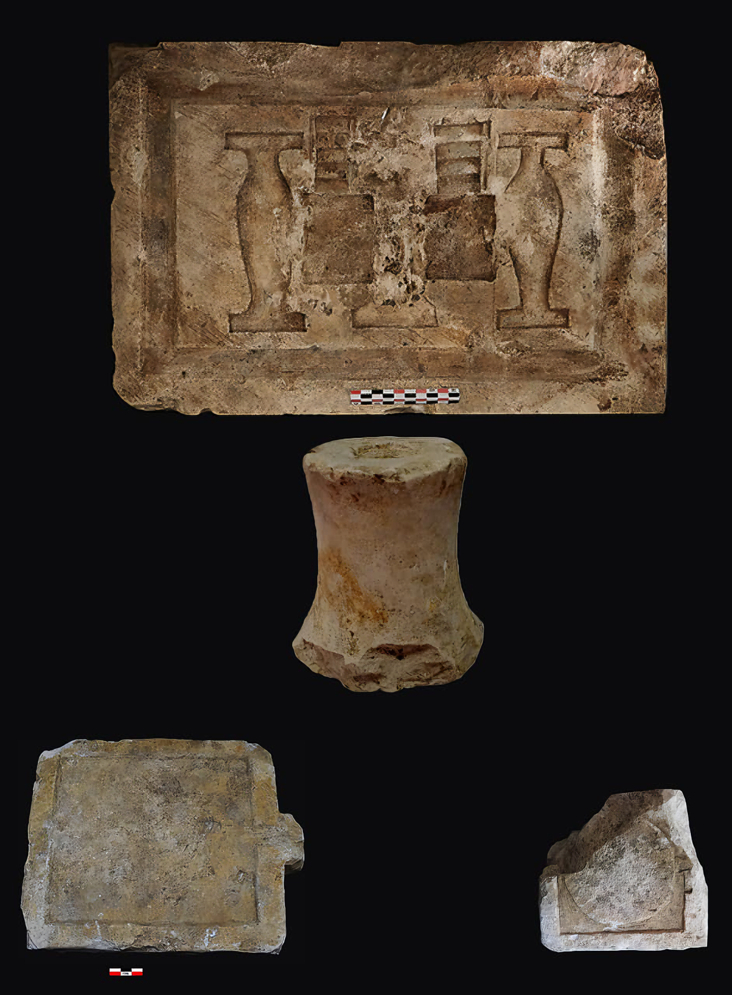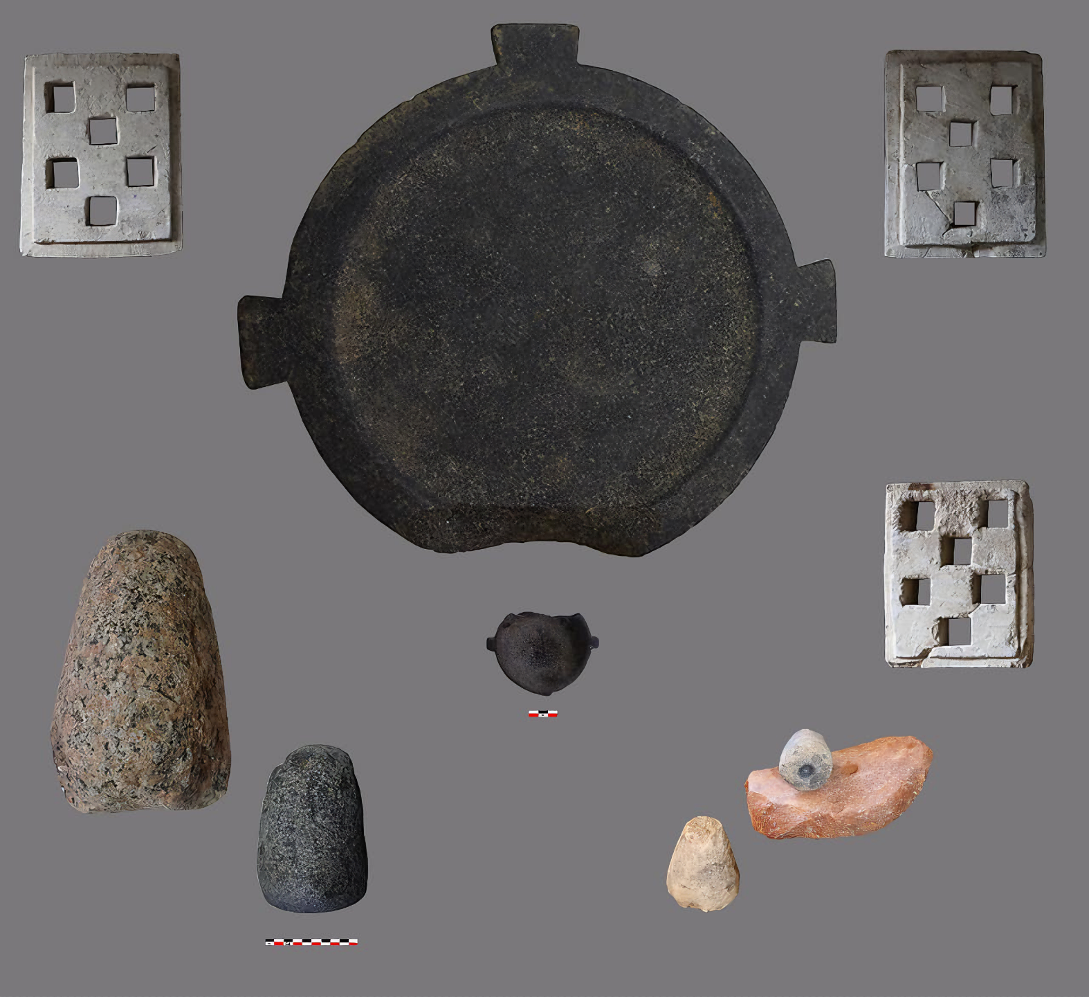 주요 발견물 중에는 희귀한 경사진 돌 해시계와 당시의 동종 건물 중 가장 큰 것으로 여겨지는 대형 진흙 벽돌 건물 잔해가 있다.