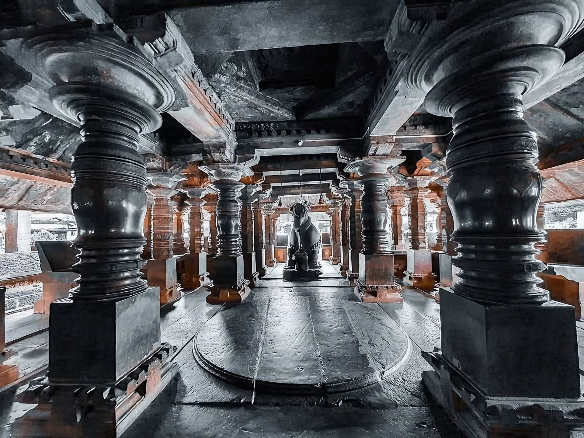 카르나타카Karnataka 주 우타라 칸나다Uttara Kannada 지역 바나바시Banavasi에 소재하는 마드후세케슈와라 사원 Madhukeshwara Temple이 펼치는 환상적인 은리티아 만다파Nritya mandapa다.