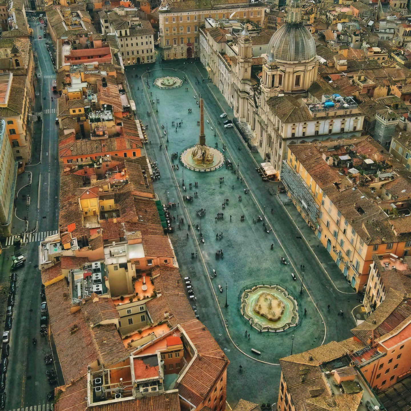 이 나보나 광장은 지금은 중앙을 차지한 분수대로 유명하지만, 연원은 아주 깊어 저 생김새에서 유추하겠지만 본래는 로마시대 벨로드롬이었다.