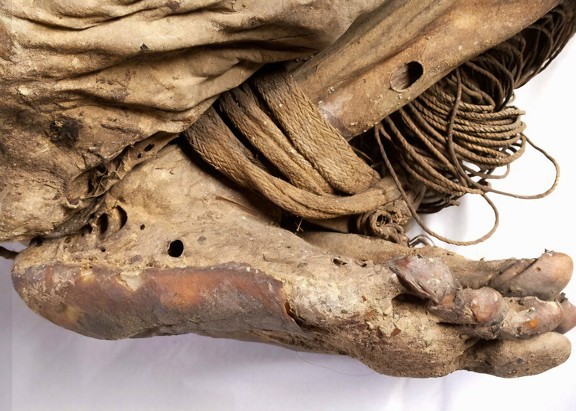 면과 모직물로 여러 겹 꼼꼼하게 감싼 이 사람은 빈손으로 사후세계로 보내지지 않았다.