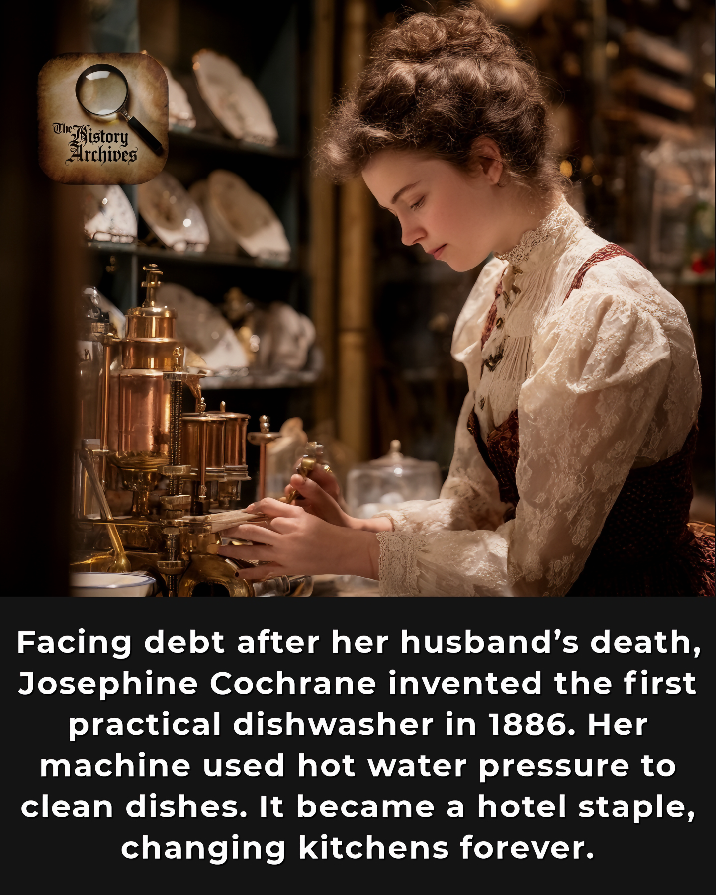 1883년 남편의 죽음으로 재정적 파탄에 직면한 조세핀 코크런Josephine Cochrane(1839~1913)은 가보로 물려받은 도자기를 부주의한 손 설거지로 잃고 싶지 않았다.