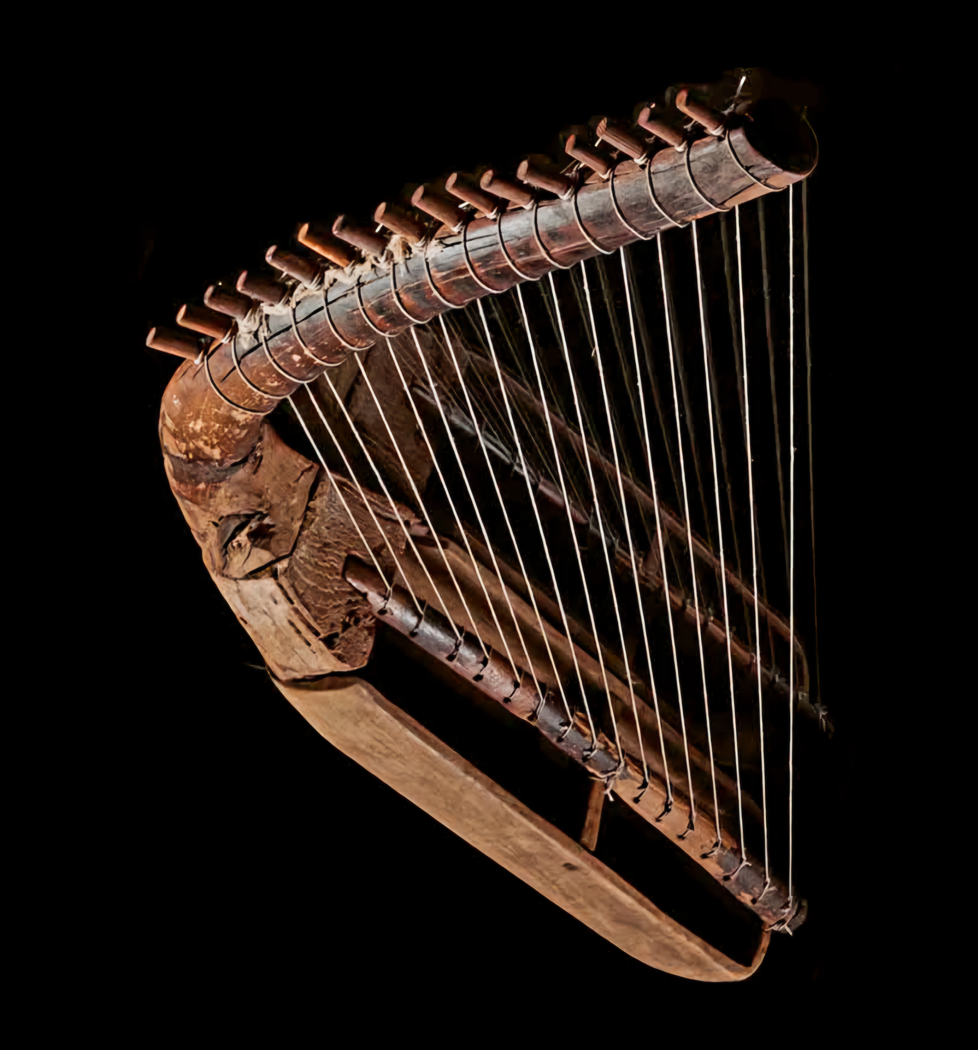 이 시대 하프는 플라타너스 나무sycamore wood를 포함한 다양한 재료로 제작했다. 꼭 저 나무만 고집하지는 않았다.