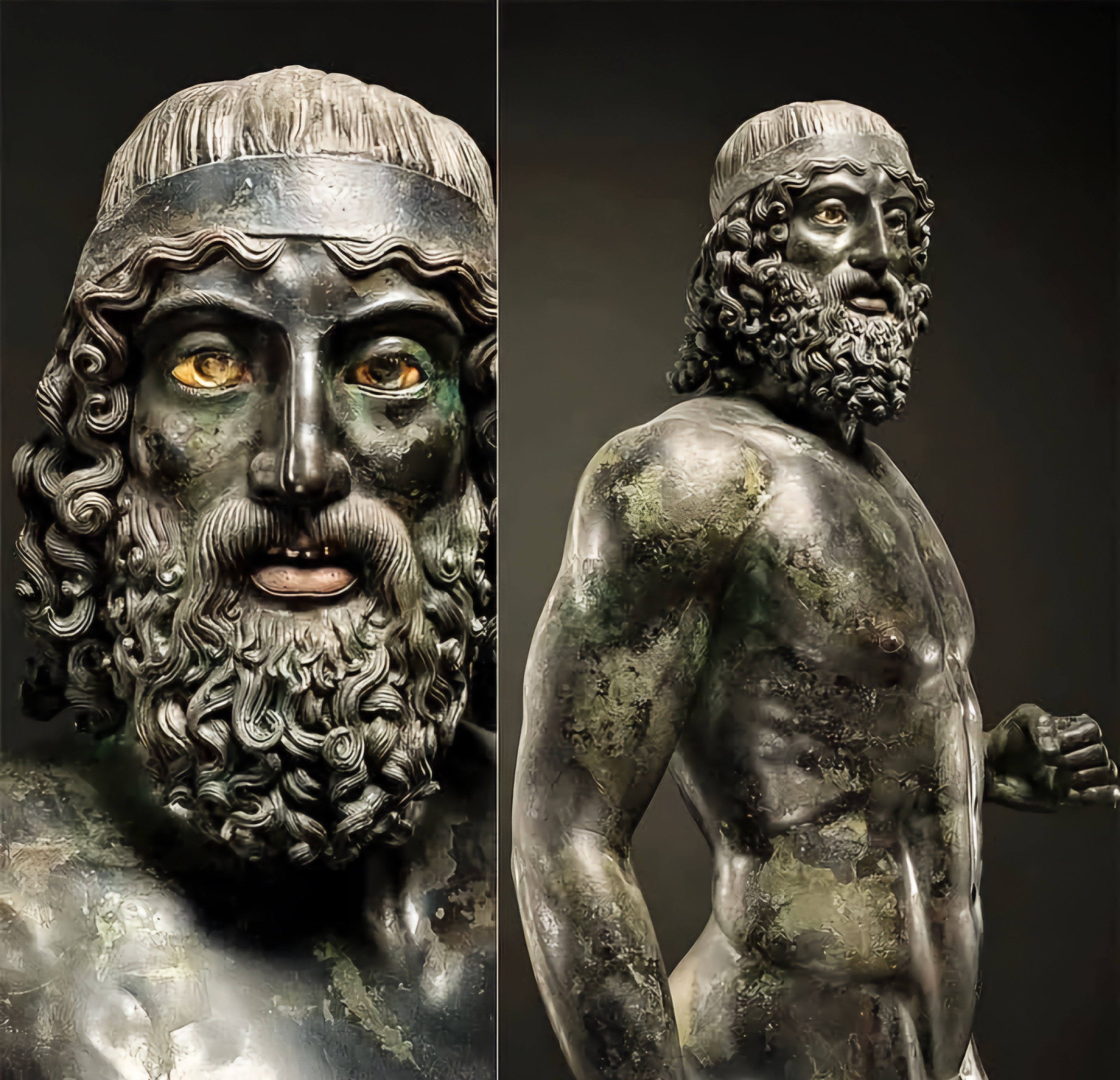 이 기물은 1972년 이탈리아 칼라브리아Calabria 해안에서 발굴되었으며,