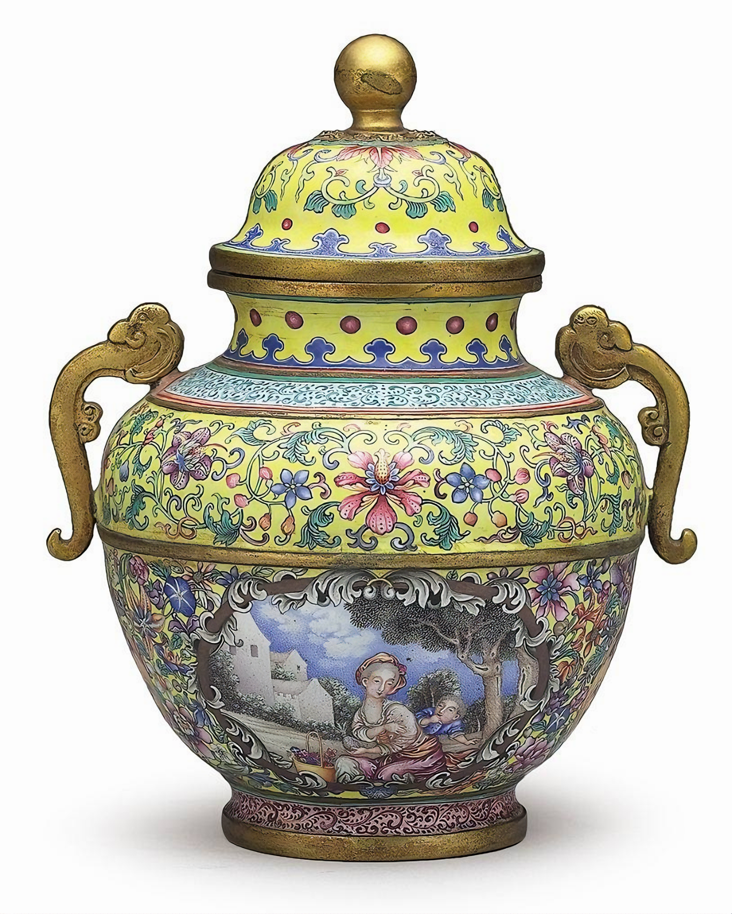 건륭제Qianlong Emperor(재위 1736~1795)는 주제와 예술적 양식 모두에서 서양 인물 장식 이미지를 선호했다.