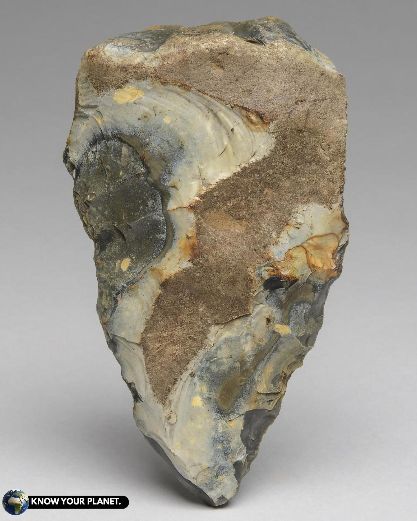 약 50만 년에서 30만 년 전, 현재의 영국 노퍽Norfolk 주 웨스트 토프츠West Tofts 지역에서 발견된 아슐리안 손도끼Acheulean handaxe다.