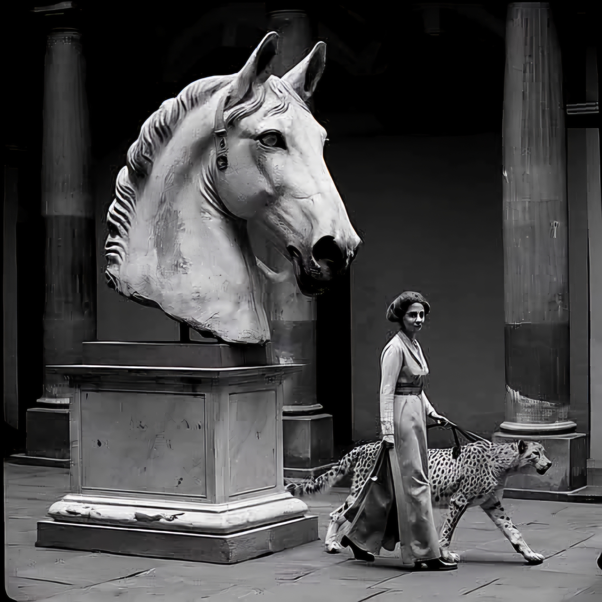 헬레니즘 시대 실물 크기 기마 조각 그룹 중 현재 남은 부분이라 설명이 보이지만