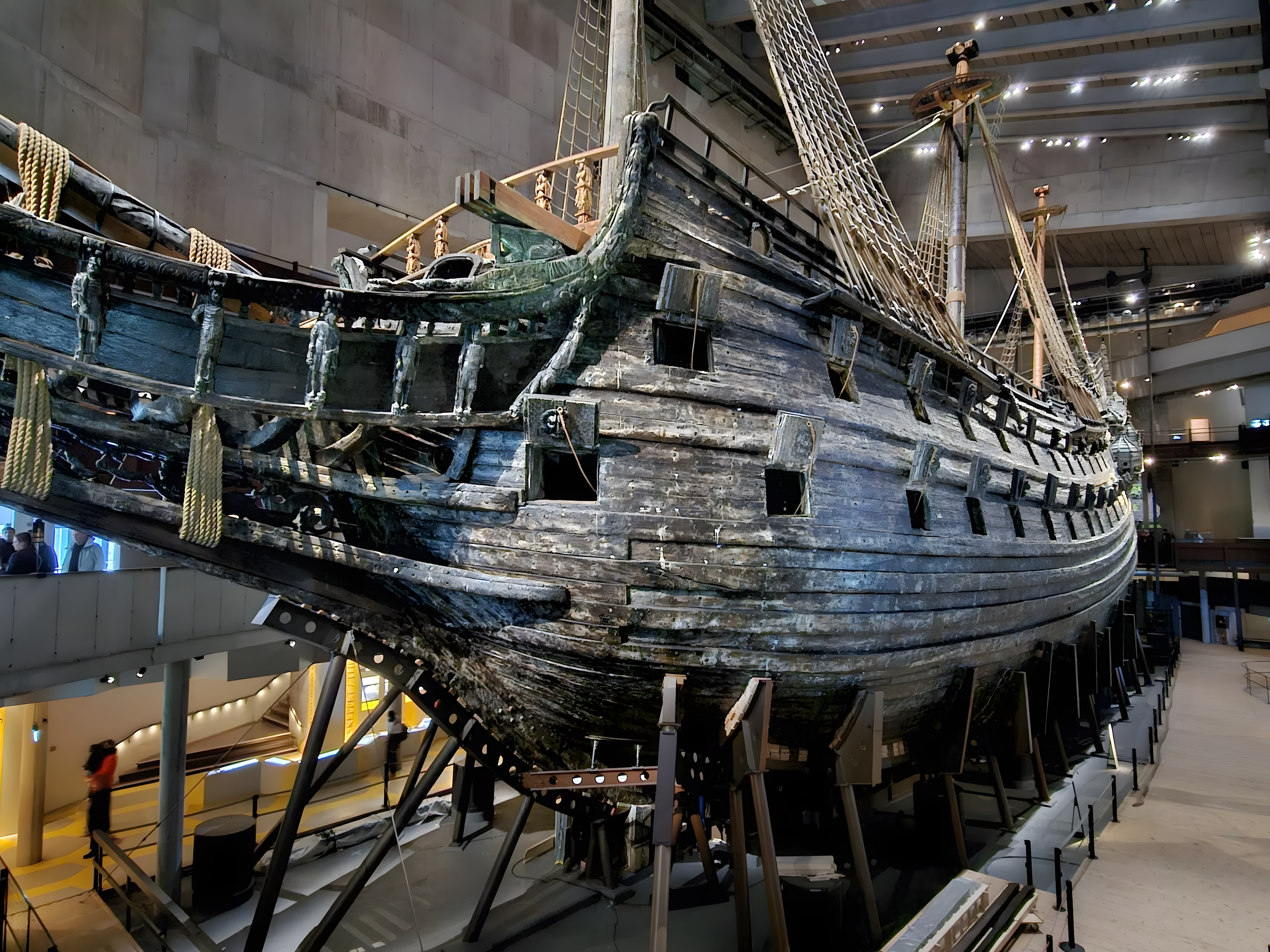1961년 인양된 이 배는 정교한 조각과 우뚝 솟은 돛대를 통해 스웨덴 제국의 예술성과 야망을 인상적으로 보여준다.