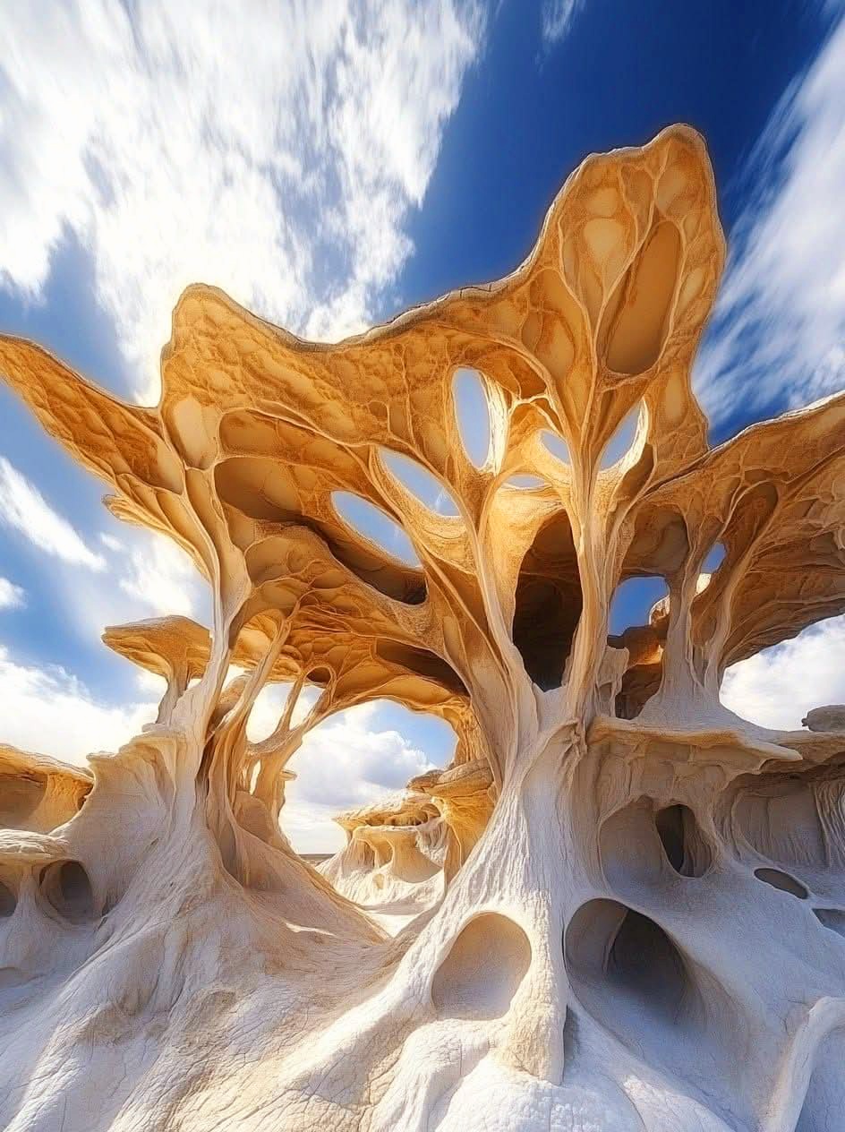 저곳을 비스티 배드랜즈/데나진 자연 보호구역 Bisti Badlands/De-Na-Zin Wilderness 이라 하는 모양이라 미국 뉴멕시코 나바호 네이션Navajo Nation의 파밍턴Farmington 남쪽에 위치한 광활한 지질 구조물이라고 소개하거니와