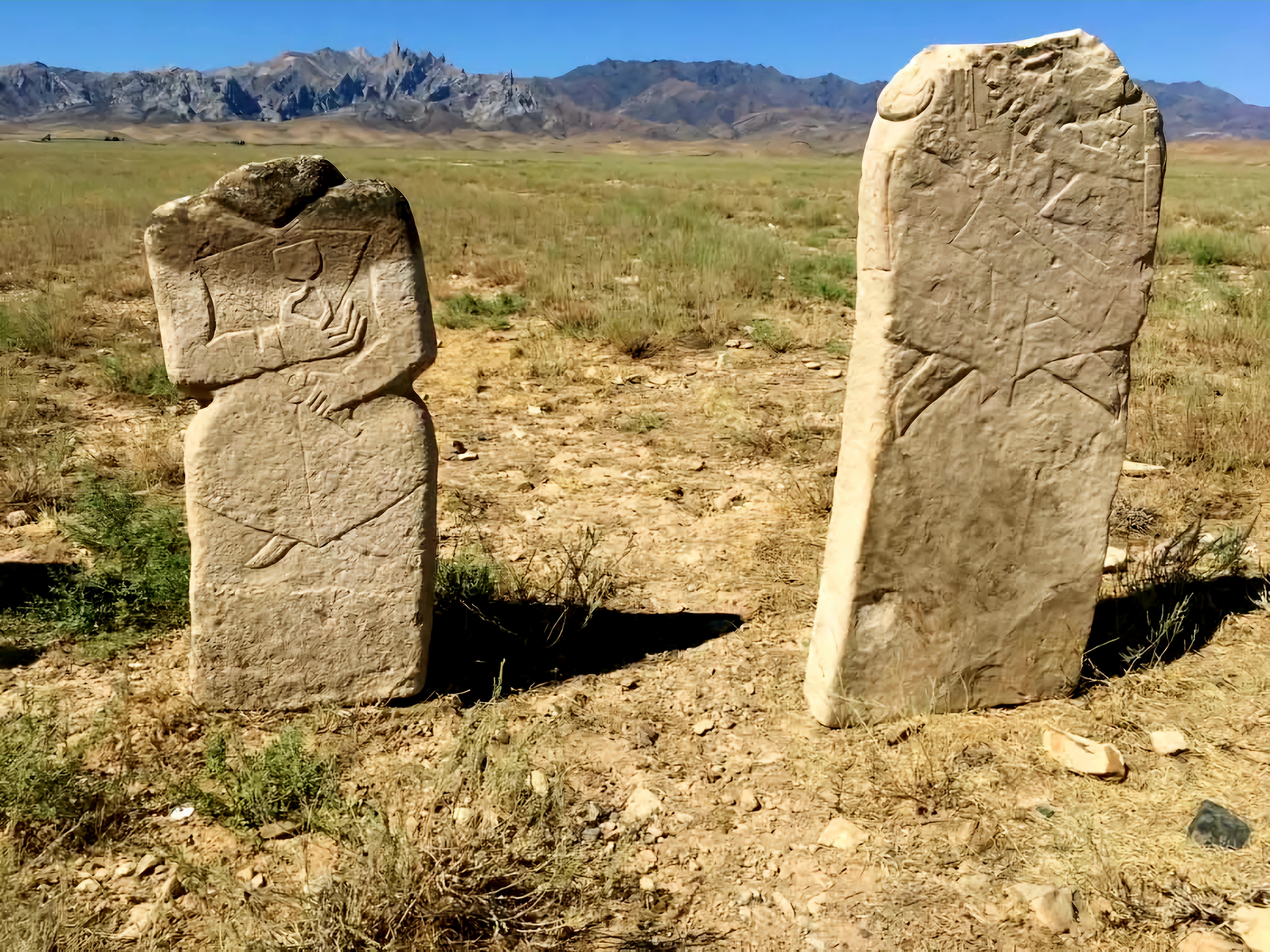 동카자흐스탄 영토에서 발견된 석상 중 가장 흔한 것은 남성 전사들의 모습이다.