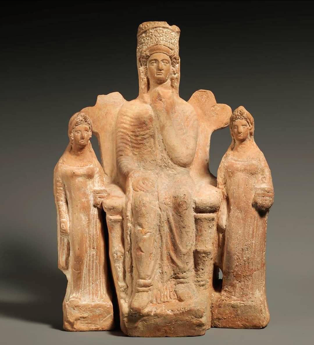 기원전 400-300 두 수행원 사이에 자리 잡은 키프로스 여신 테라코타 조각상이다.
