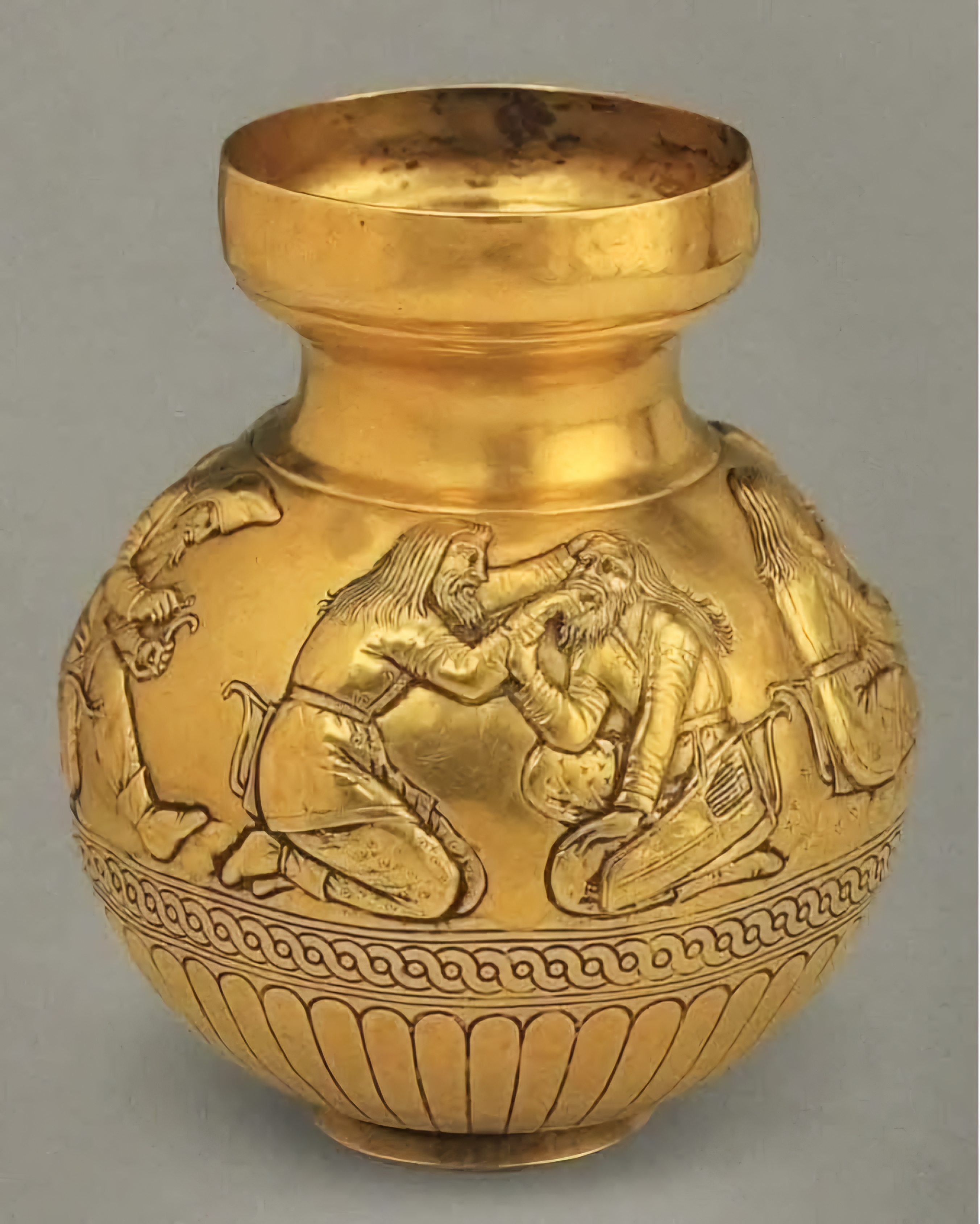 그리스 금세공인이 만들었다고 추정하는데, 그 작가는 스키타이인 외모, 의복, 갑옷 등을 복잡하게 포착했다.