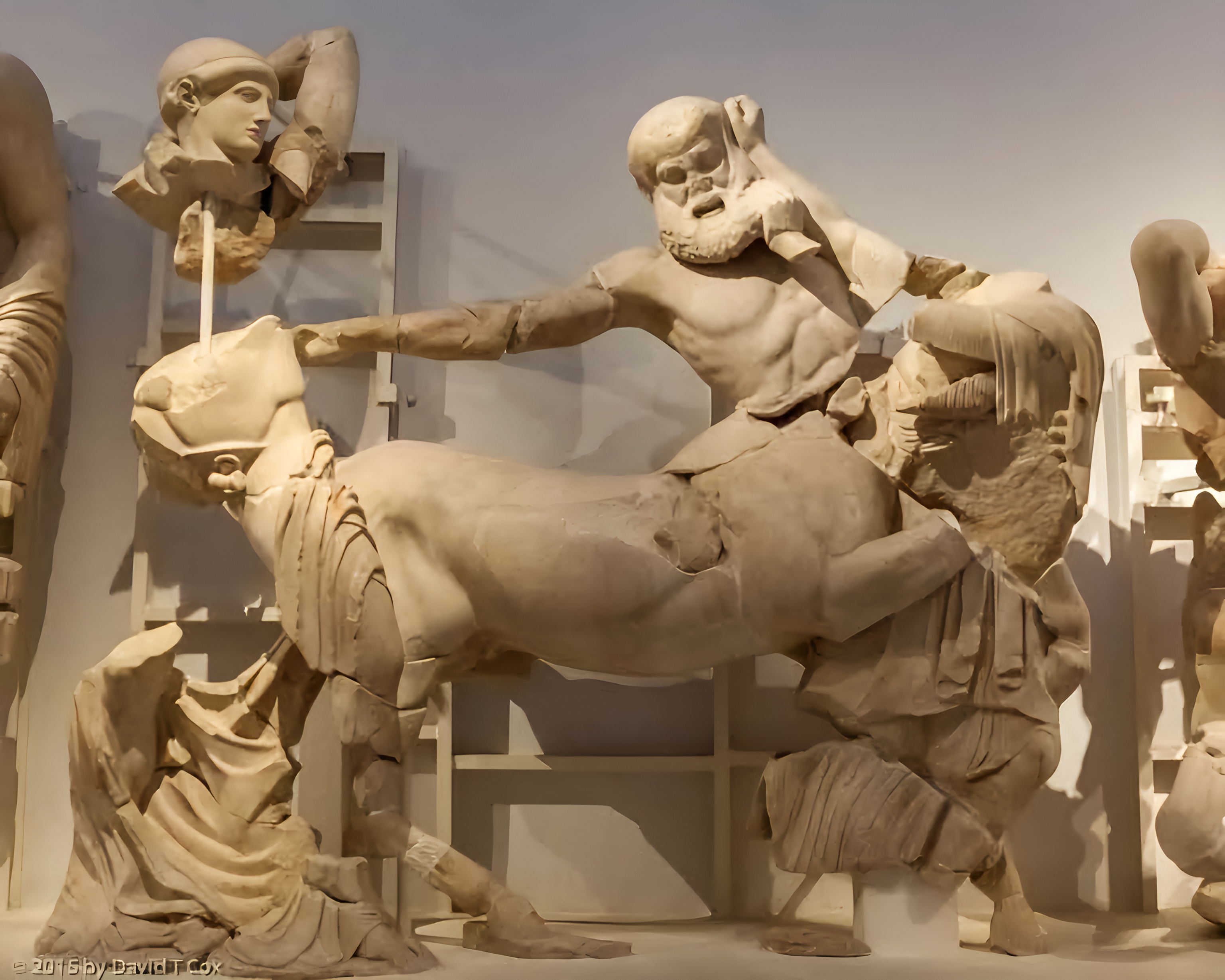 이 장면은 한때 종교적 중요성과 고대 올림픽 게임으로 유명한 고대 그리스 올림피아Olympia에 있던 사원의 페디먼트였다.