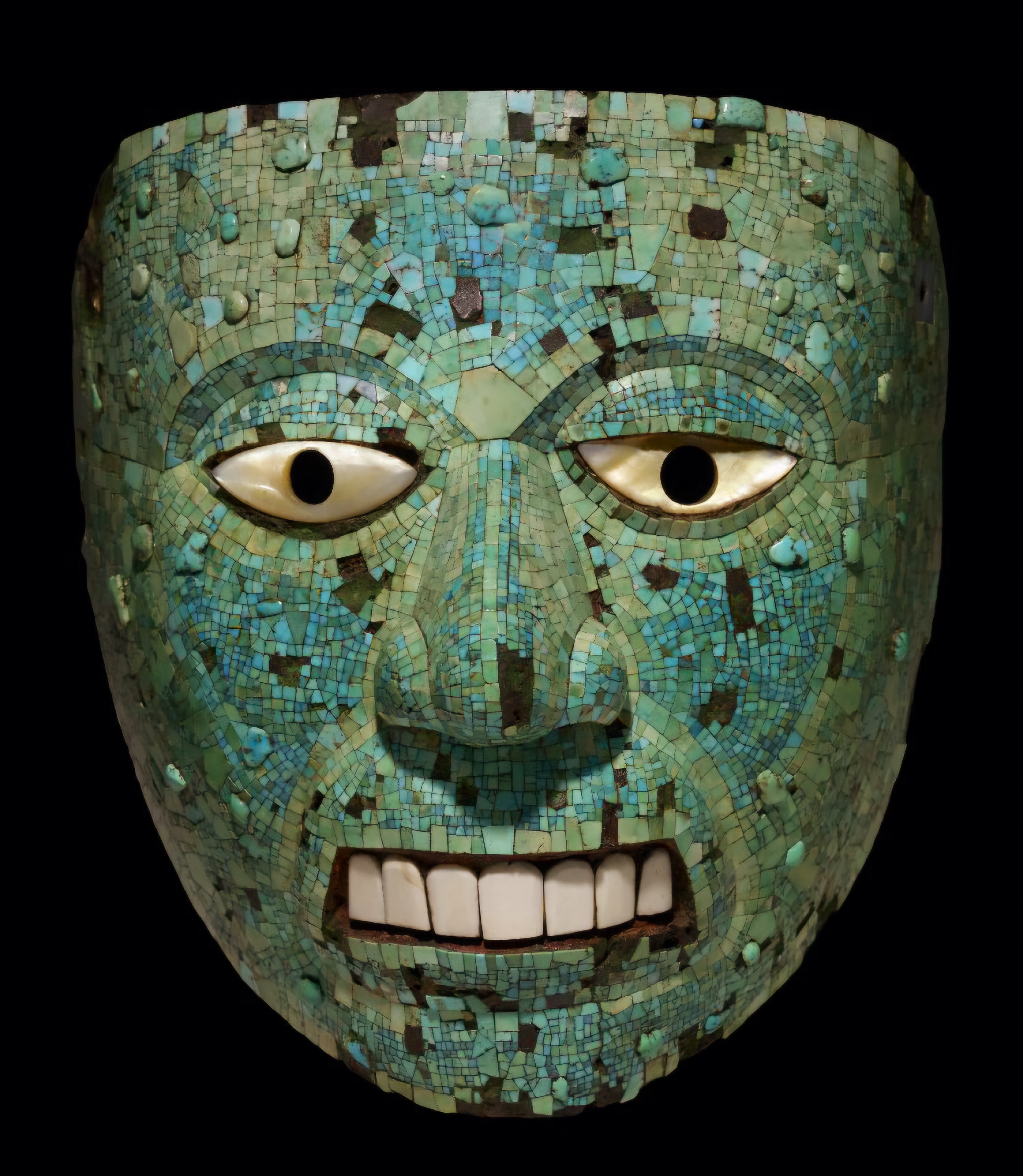 자개 눈에 소라고둥 이빨을 장착한 아즈텍 가면