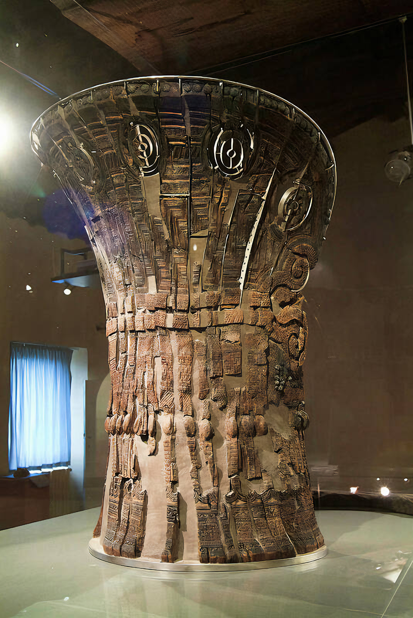 기원전 1100년부터 기원전 700년까지 이탈리아 중북부에 번성한 철기시대 빌라노바 문화 Villanovan culture 어느 통치자 혹은 사제를 겸한 통치자가 쓴 왕좌로 본다.