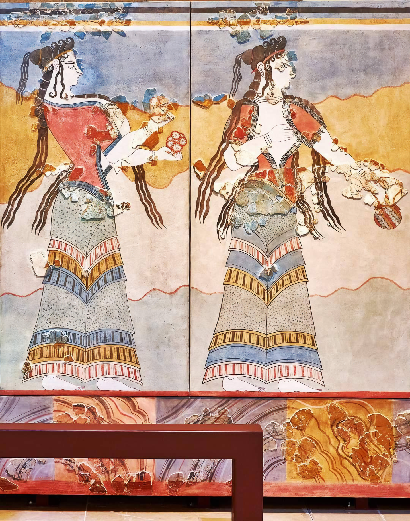 각자 손에 제물을 들고 있는데, 아마도 신을 위한 봉헌물로 보인다.