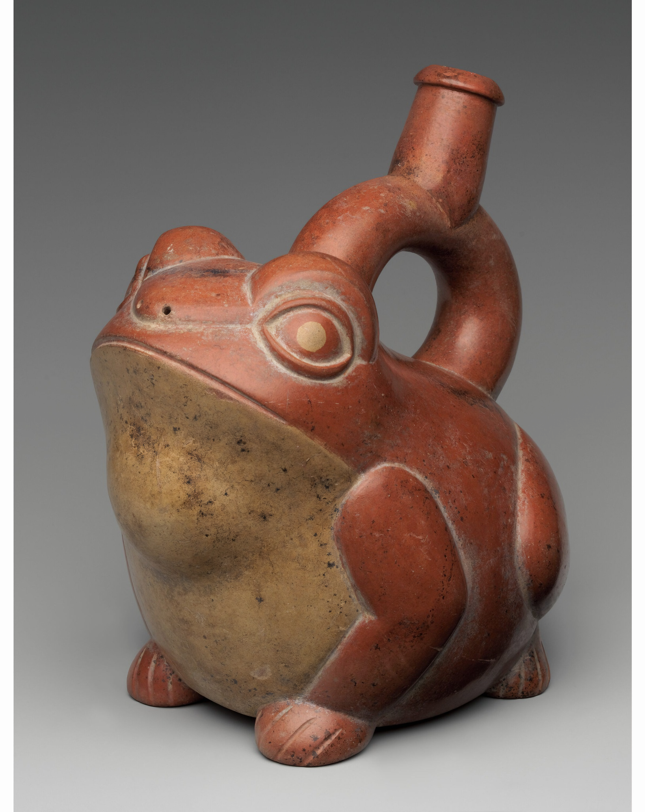 Stirrup Spout Bottle: Frog. Date: 2nd–5th century AD. Culture:Moche. Geography: Peru. Medium: Ceramic. Collection: Metropolitan Museum of Art, NY.