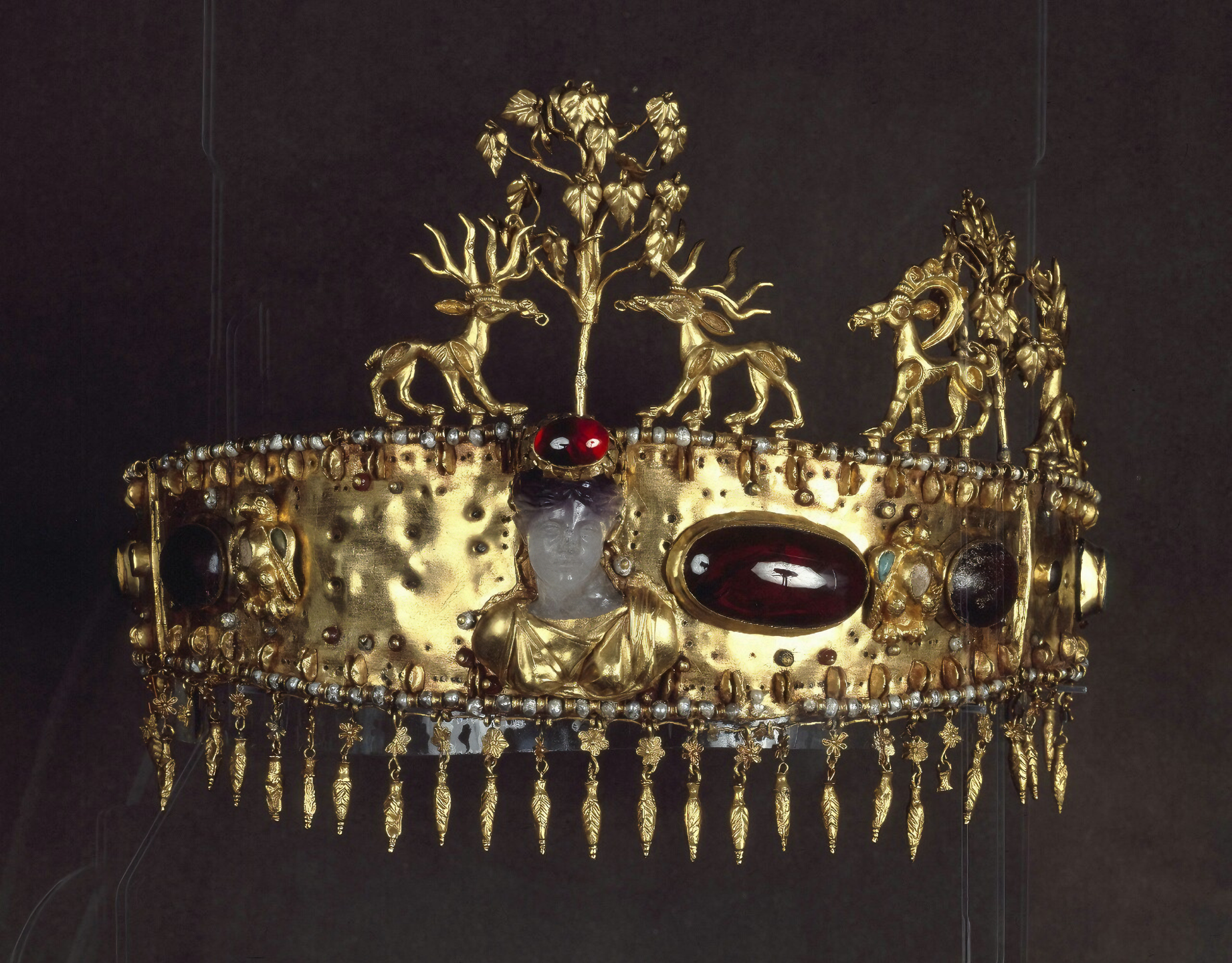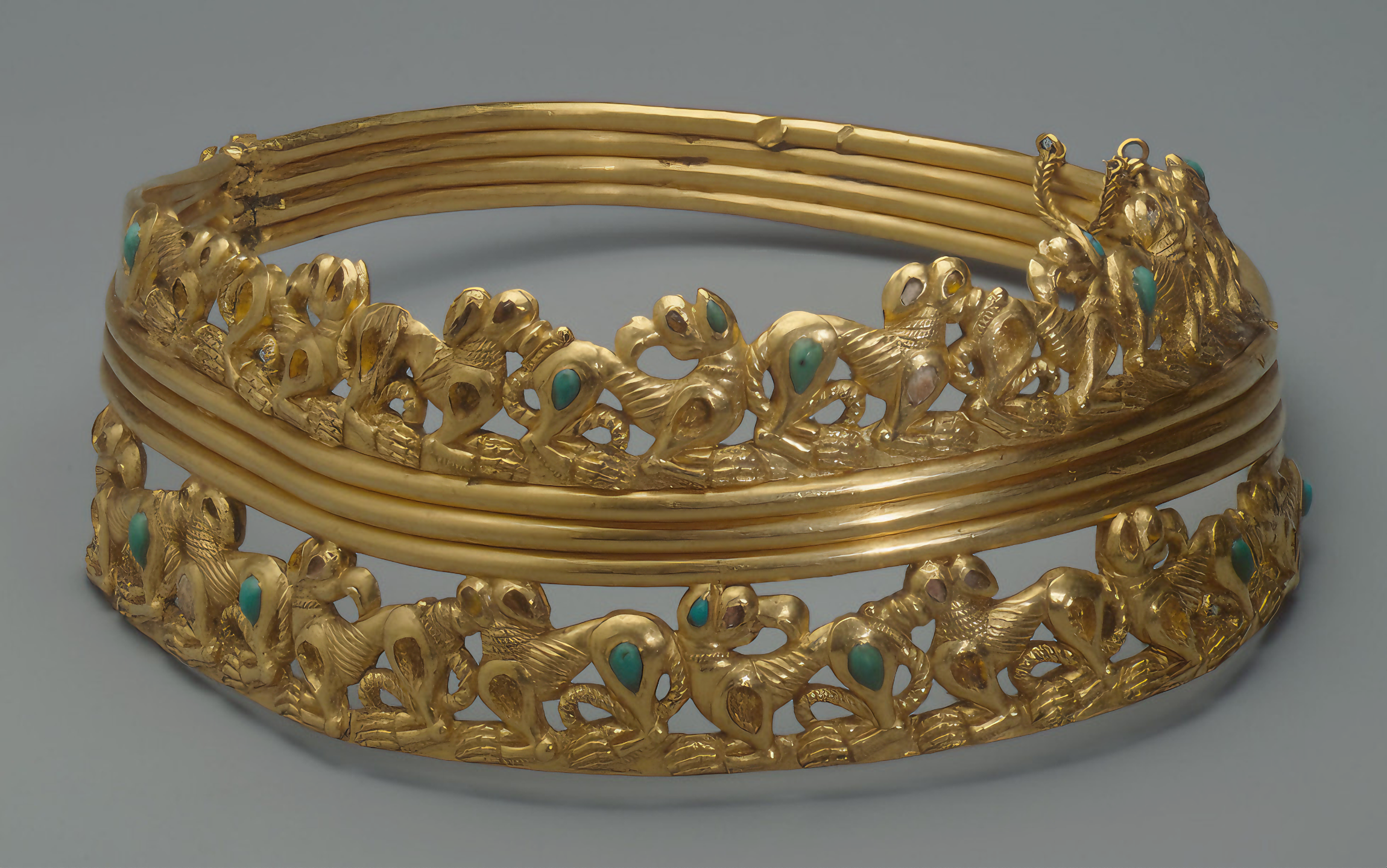 발굴품 중 압권은 이른바 그리스 양식과 사르마티아 양식을 혼합했다는 왕관diadem이다.