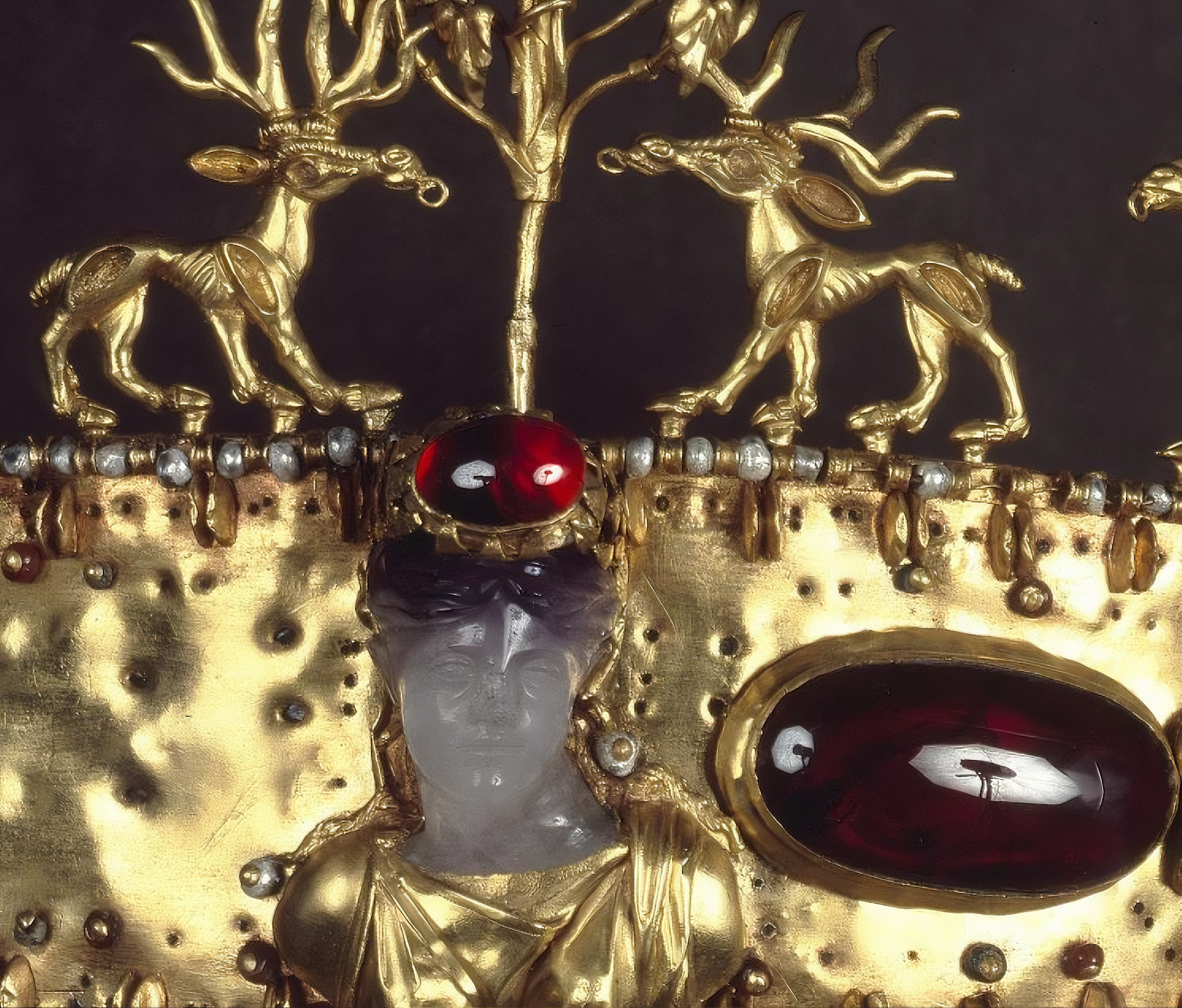 자수정 흉상amethyst bust 은 분명히 그리스 작품이지만, 모든 것이 그리스 작업장에서 만들어졌는지 아니면 사르마티아 장인이 조립했는지에 대해서는 의견이 다르다.