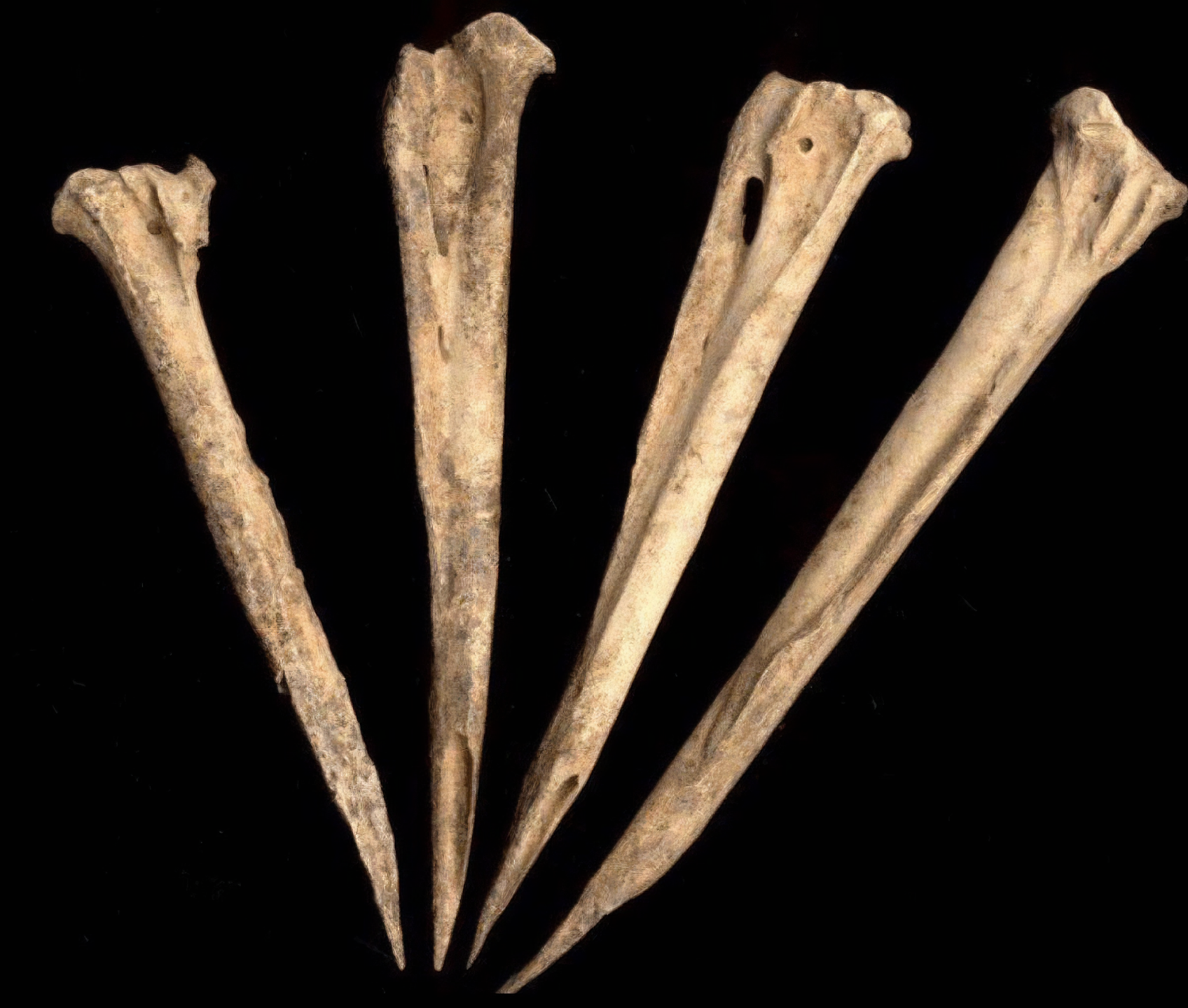 빗 중 2개는 사람 뼈로, 2개는 바다새 뼈로 만들었다.