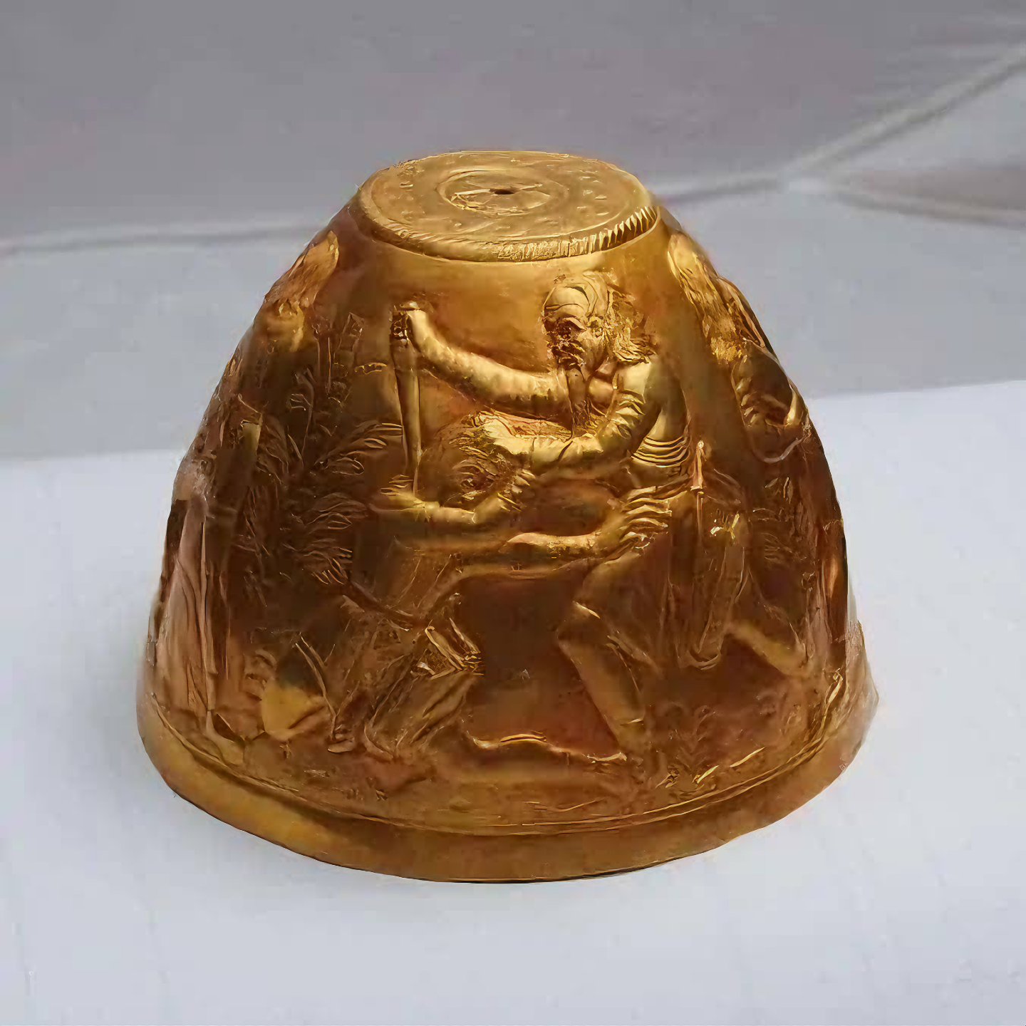 발굴 결과 두 개 양동이 모양의 금 그릇이 발견되었는데, 각각은 거꾸로 놓여 있었다.