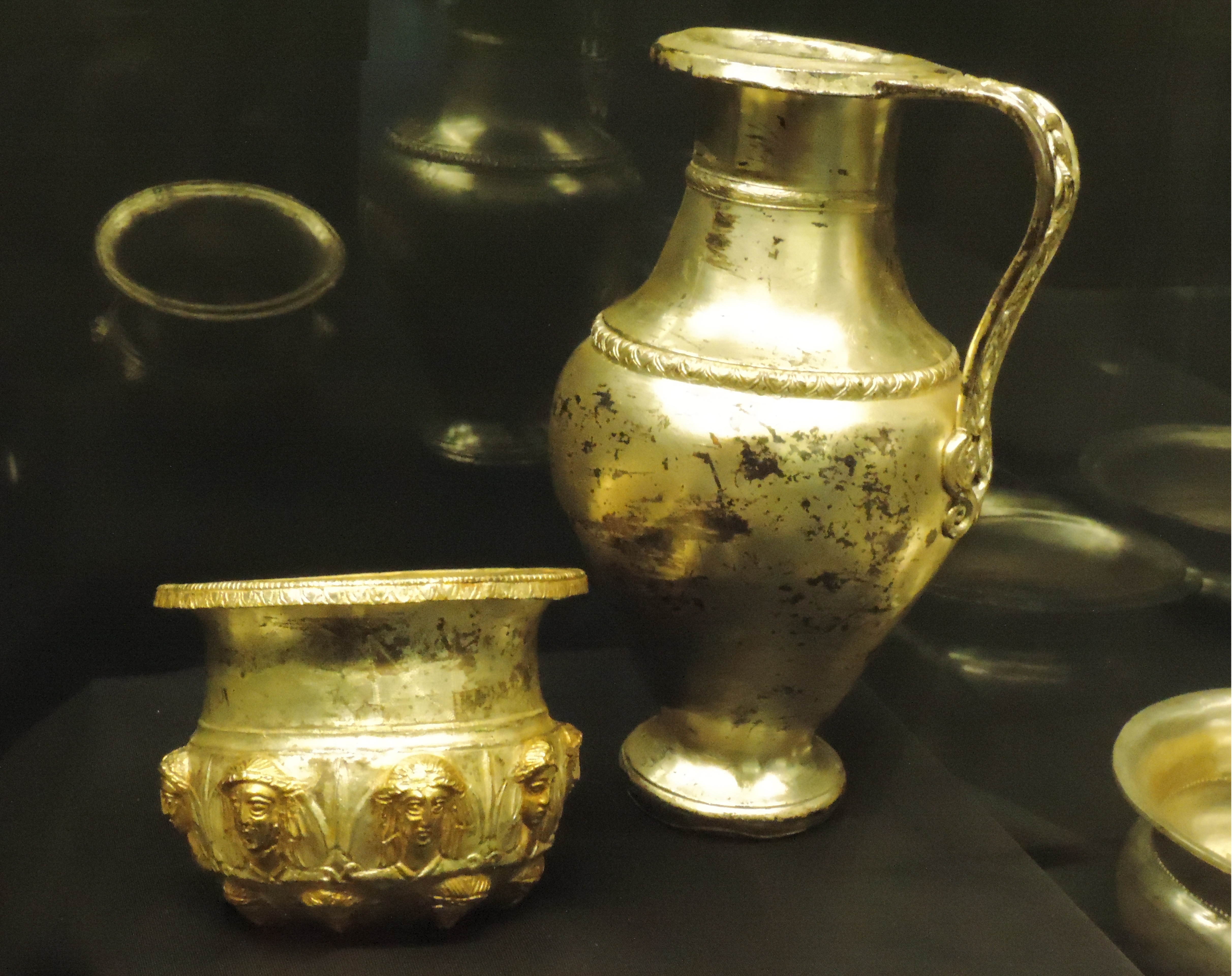 접시plates, 말 고삐horse bridles와 그릇 응용물이 그룹이고 나머지 한 부류에는 약병phiales 9개, 주전자ewers 3개와 사발 1점이 포함된다.