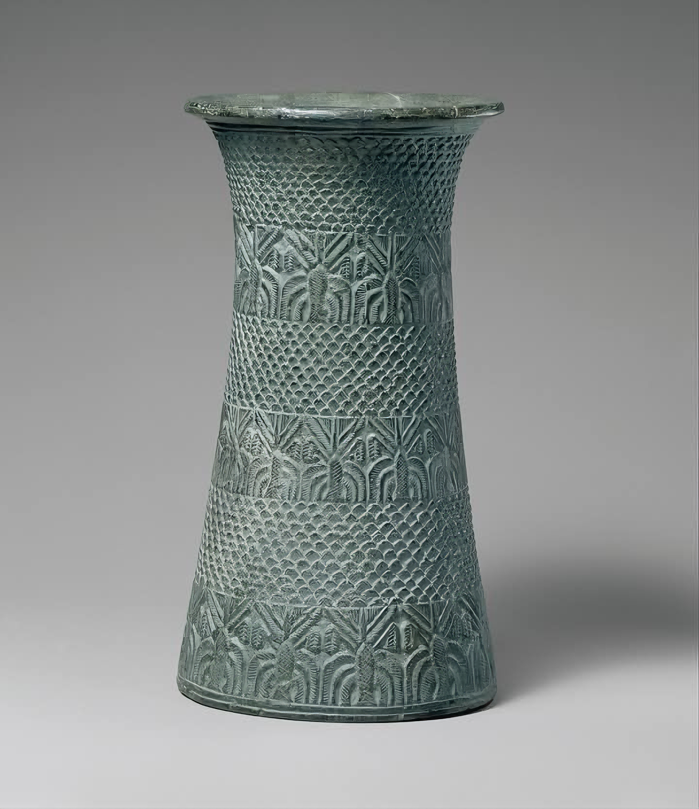 녹니석chlorite으로 만들었으며 띠 모양으로 배열된 야자수 모티프를 포함해 복잡하게 조각한 패턴이 특징이다.