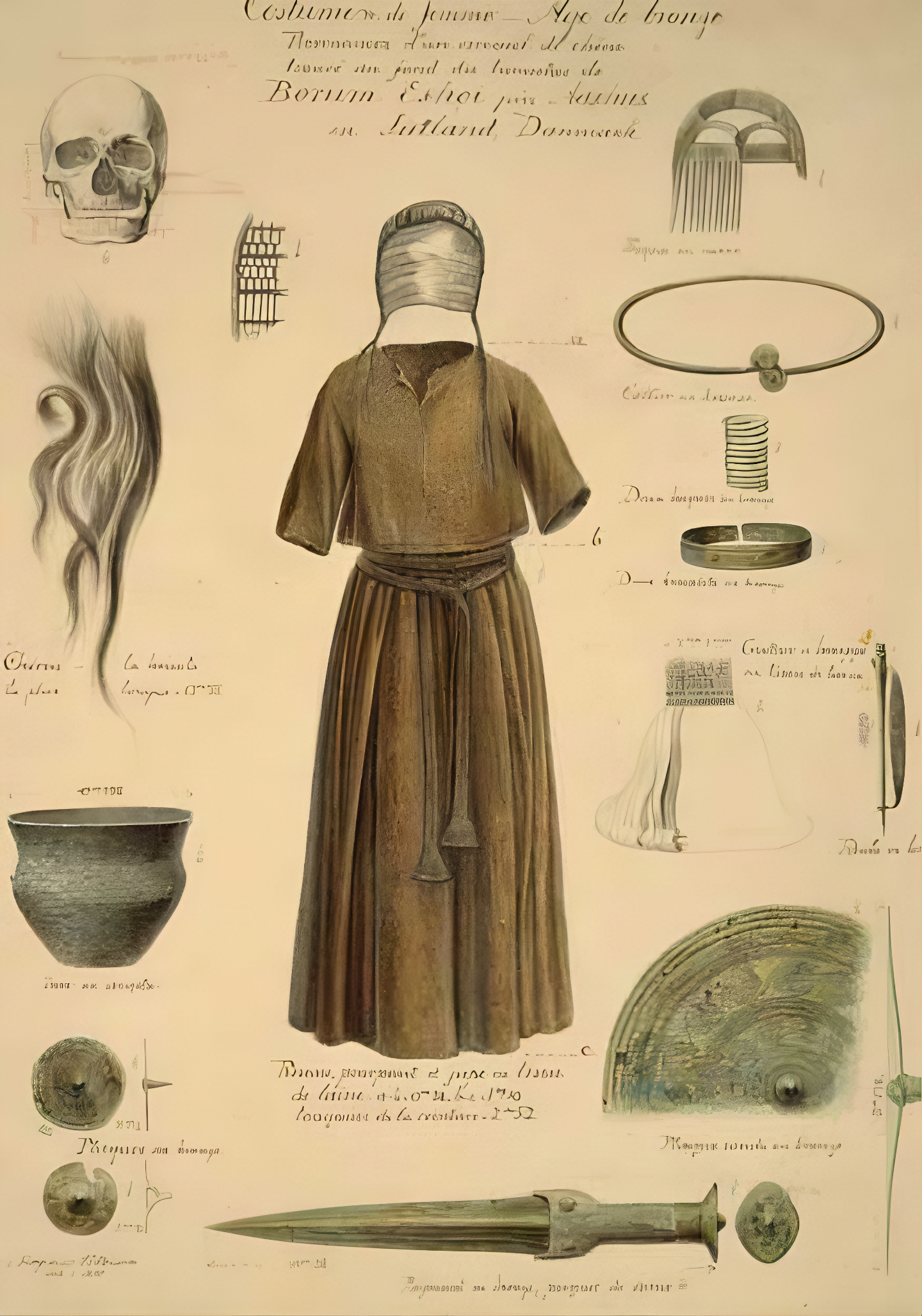지난 세기 덴마크 보룸 에쇼이 무덤 Borum Eshøj barrow 에서 발굴된 기원전 1350년 무렵 청동기 시대 매장 흔적이니,