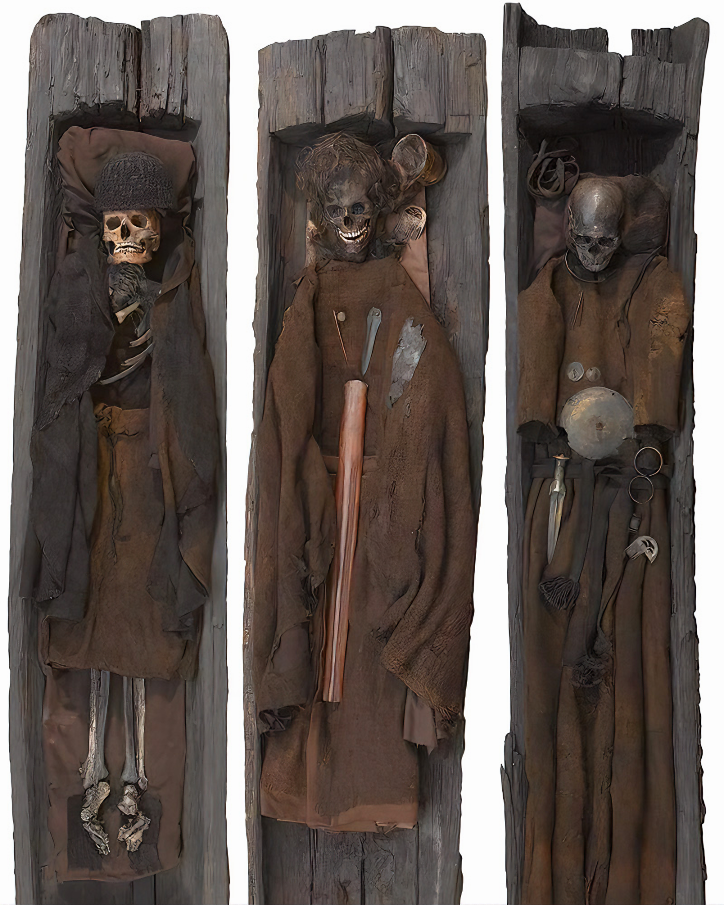 놀랍게도 이 매장지에서는 남성 두 명과 여성 한 명을 각각의 참나무 관에 안치했으며,