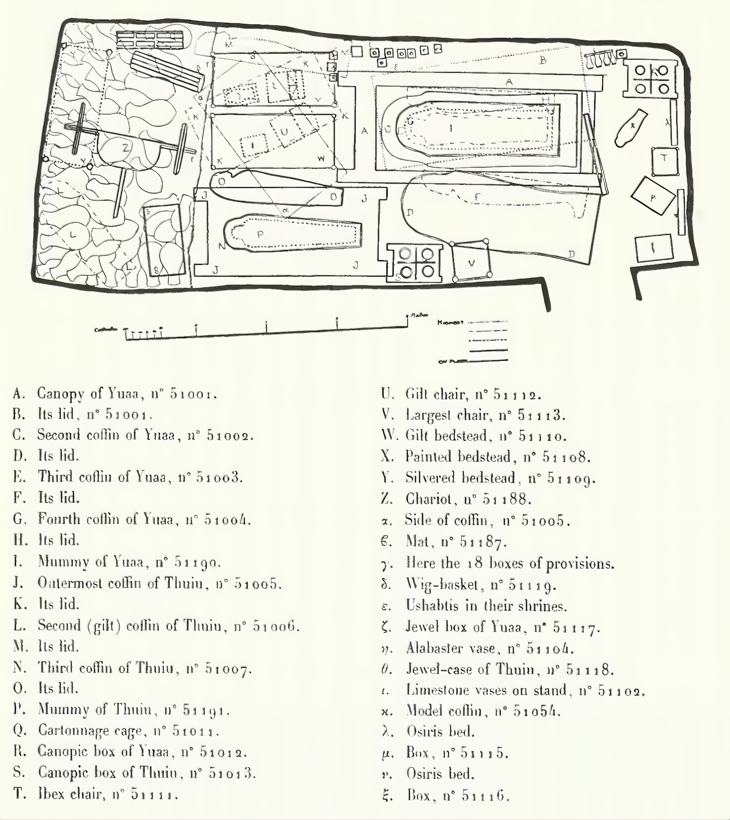 무덤은 고대에 도굴되었지만 상자, 침대, 의자, 전차, 그리고 수많은 저장 항아리를 포함하여 많은 원래 유물이 보존되어 있었다.