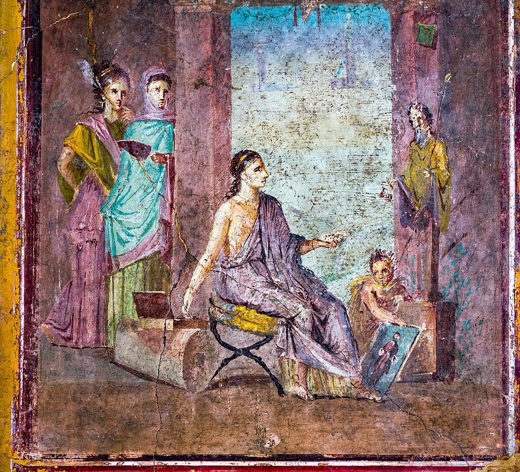 서기 1세기경 무렵 이 그림은 작업 중인 화가를 묘사한 몇 안 되는 로마 시대 그림 중 하나이며, 주제가 종종 이상화한 여성 예술가인 것은 이례적이다.