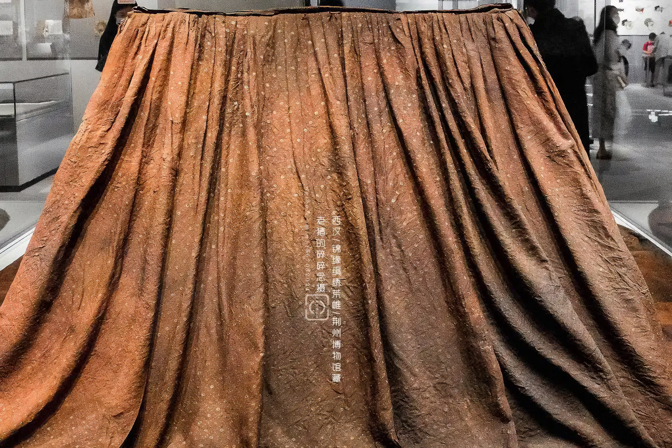 세 번째 층을 걷어냈을 때, 고고학자들은 견직물 표면에 가로로 누워 있는 인간 모양 문양이 나타나며 머리, 몸, 팔다리가 모두 선명하게 보이는 것을 발견하고 놀랐다.