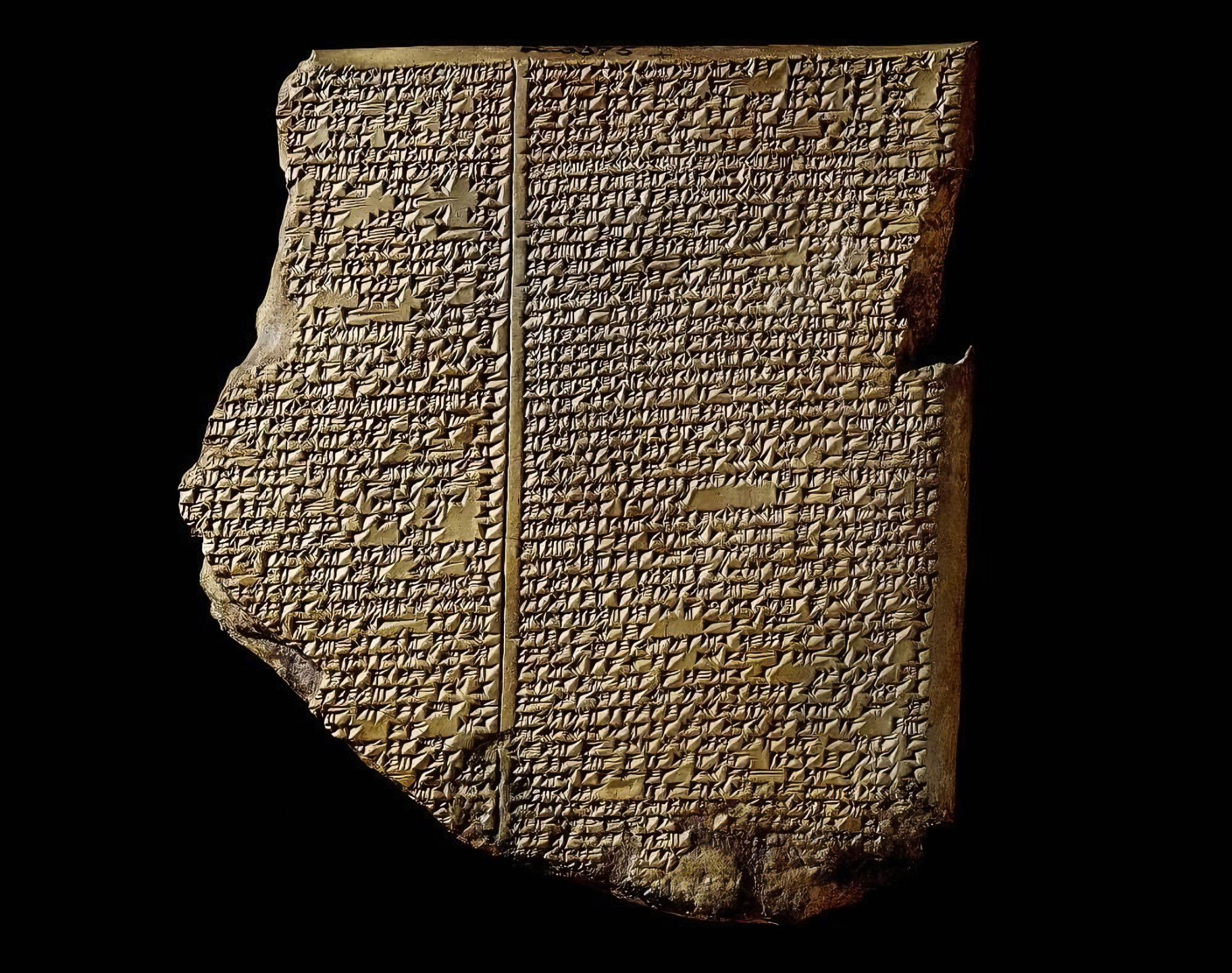 The flood tablet inscribed with the Babylonian account of the flood from the Epic of Gilgamesh. Iraq, 7th century BCE