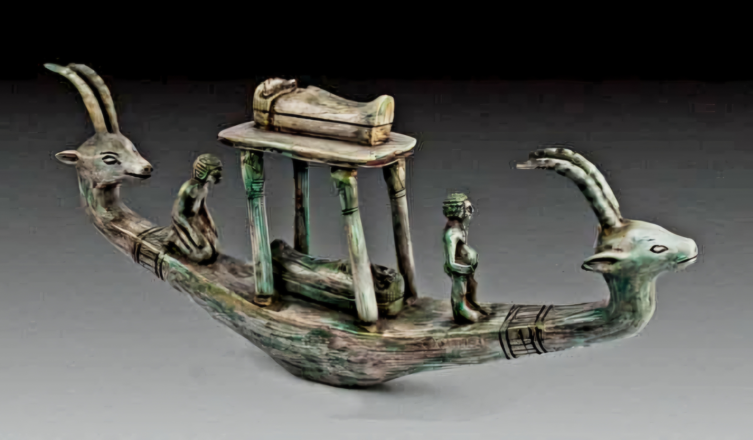 고대 이집트 제18왕조 시대 이 모형 보트 역시 그 상징화 장치 그 자체가 상여임을 보여준다.